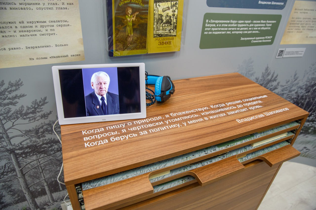 Экспозиция включает музейную комнату «Кабинет писателя» и выставку репродукций гравюр Станислава Косенкова «Писатель и художник». Особенно важно, что музейная комната располагается в кабинете, где с 2013 по 2020 год Владислав Мефодьевич работал над изданием журнала «Звонница».
