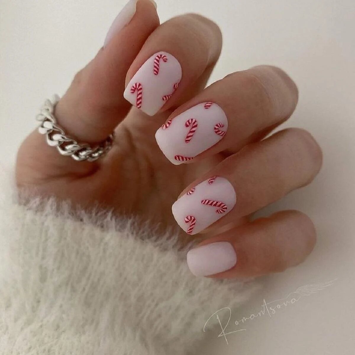 - Санта и олени: Красный, вечный символ праздников, в сочетании с милыми рождественскими мотивами станет отличным вариантом для зимнего маникюра.