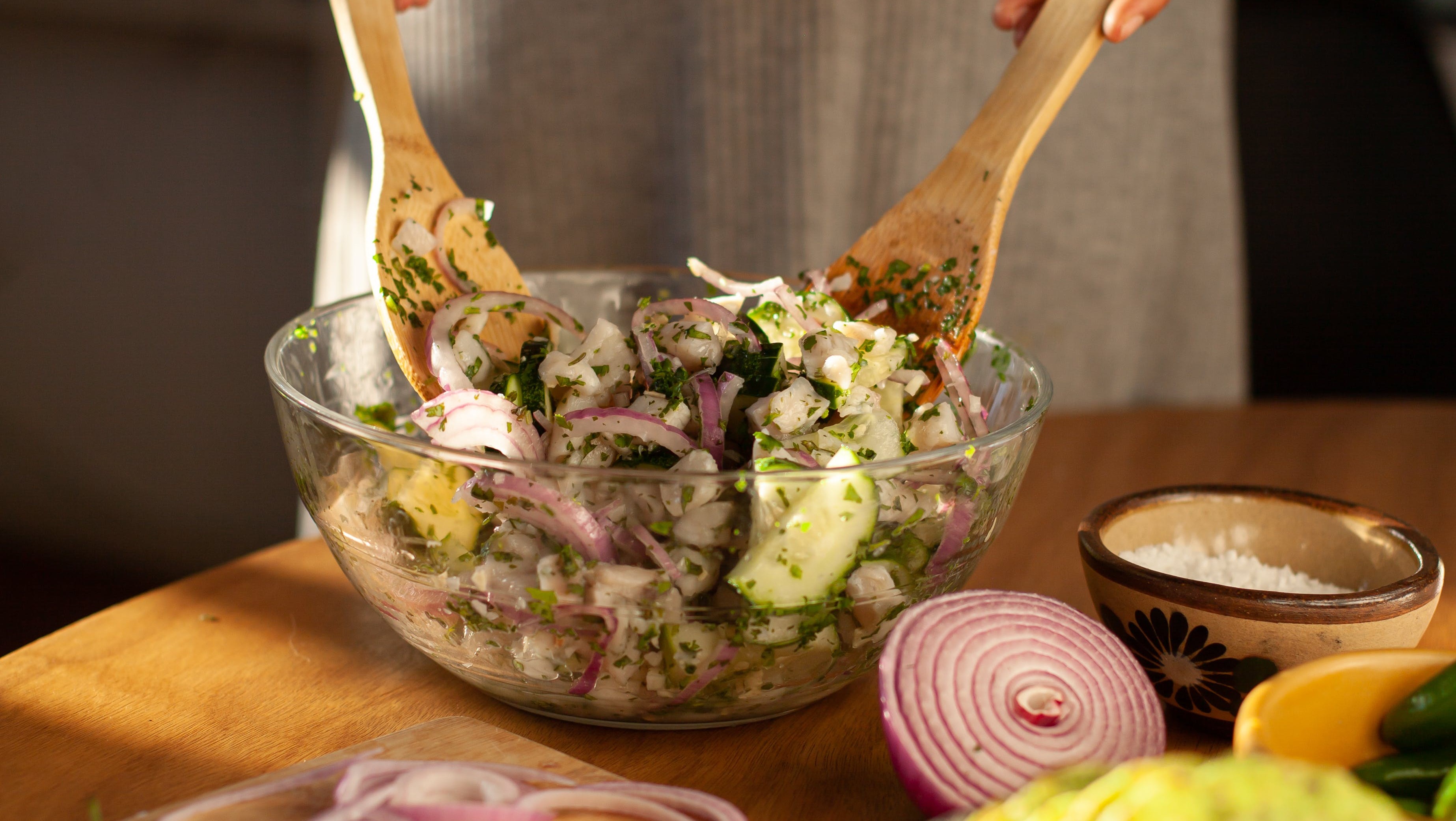 Все компоненты необходимо нарезать на кубики и перемешать со сметаной. Чтобы добавить пряные нотки, можно всыпать сверху немного сушенного укропа или петрушки, пишет портал 1000.menu. Необычное сочетание покорит домашних.