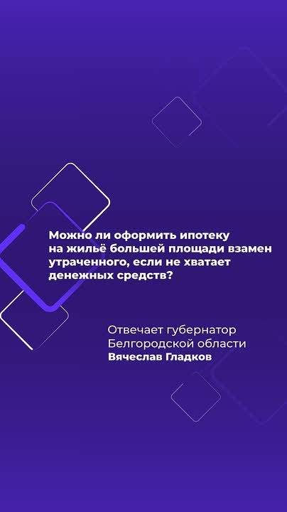 Вячеслав Гладков сообщил, что на уровне правительства России принято решение предоставлять ипотеку под 2% для жителей приграничных сёл, которые приобретают новое жильё взамен утраченного