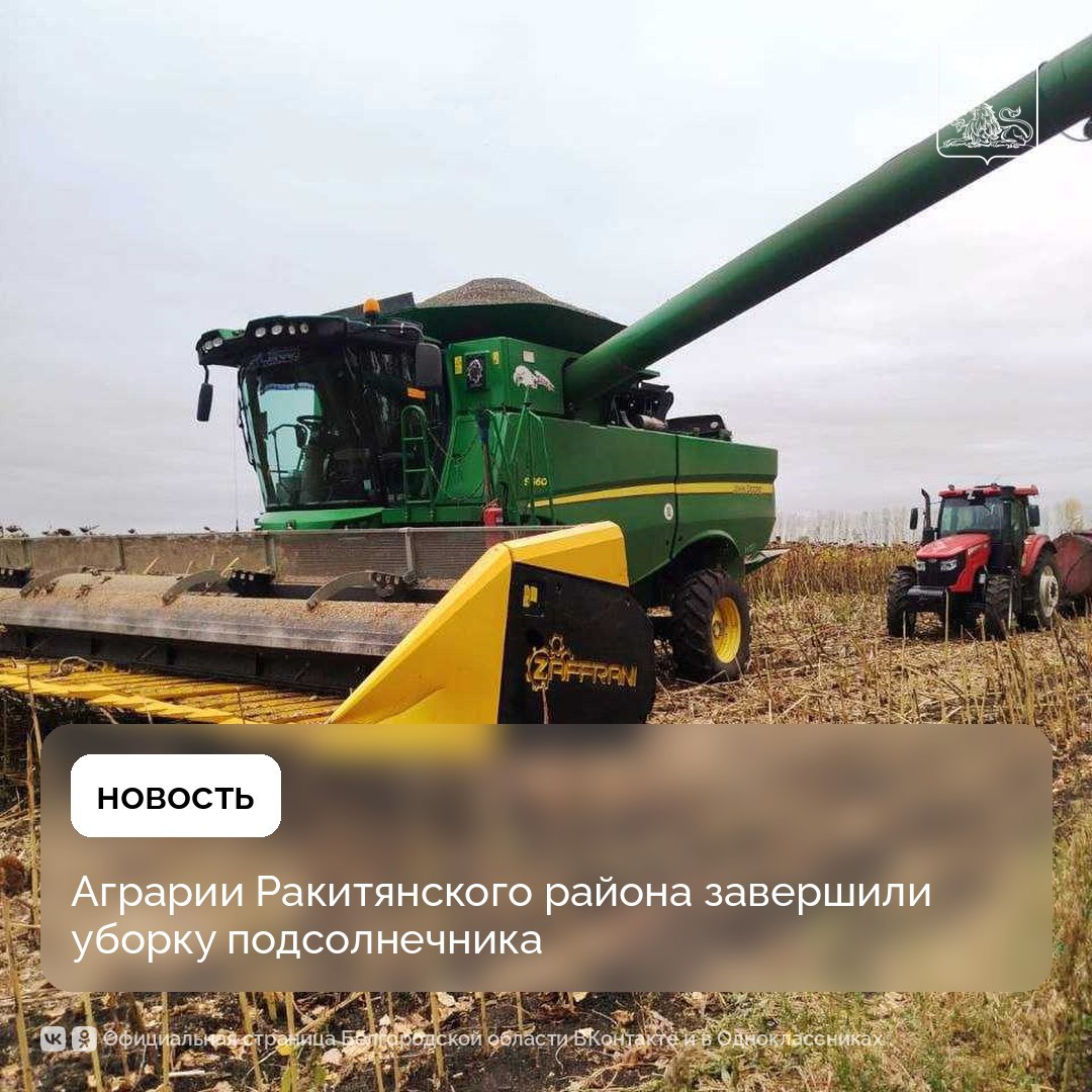 Аграрии Ракитянского района завершили уборку подсолнечника