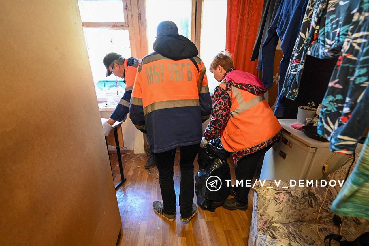 Территория оцеплена. Коммунальные службы на месте помогают жителям убрать осколки стёкол, сообщили в мэрии. В кратчайшие сроки все оконные проёмы будут закрыты по временной схеме.