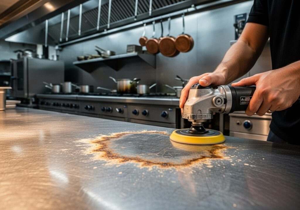 Кислотные пятна на металлических столешницах — серьезная проблема, которая может возникнуть в любом кафе или ресторане. Такие пятна не только портят внешний вид, но и могут повредить сам материал, превращая его в настоящую головную боль для владельцев. Замена столешницы обойдется в круглую сумму, поэтому важен правильный и своевременный подход к решению вопроса.