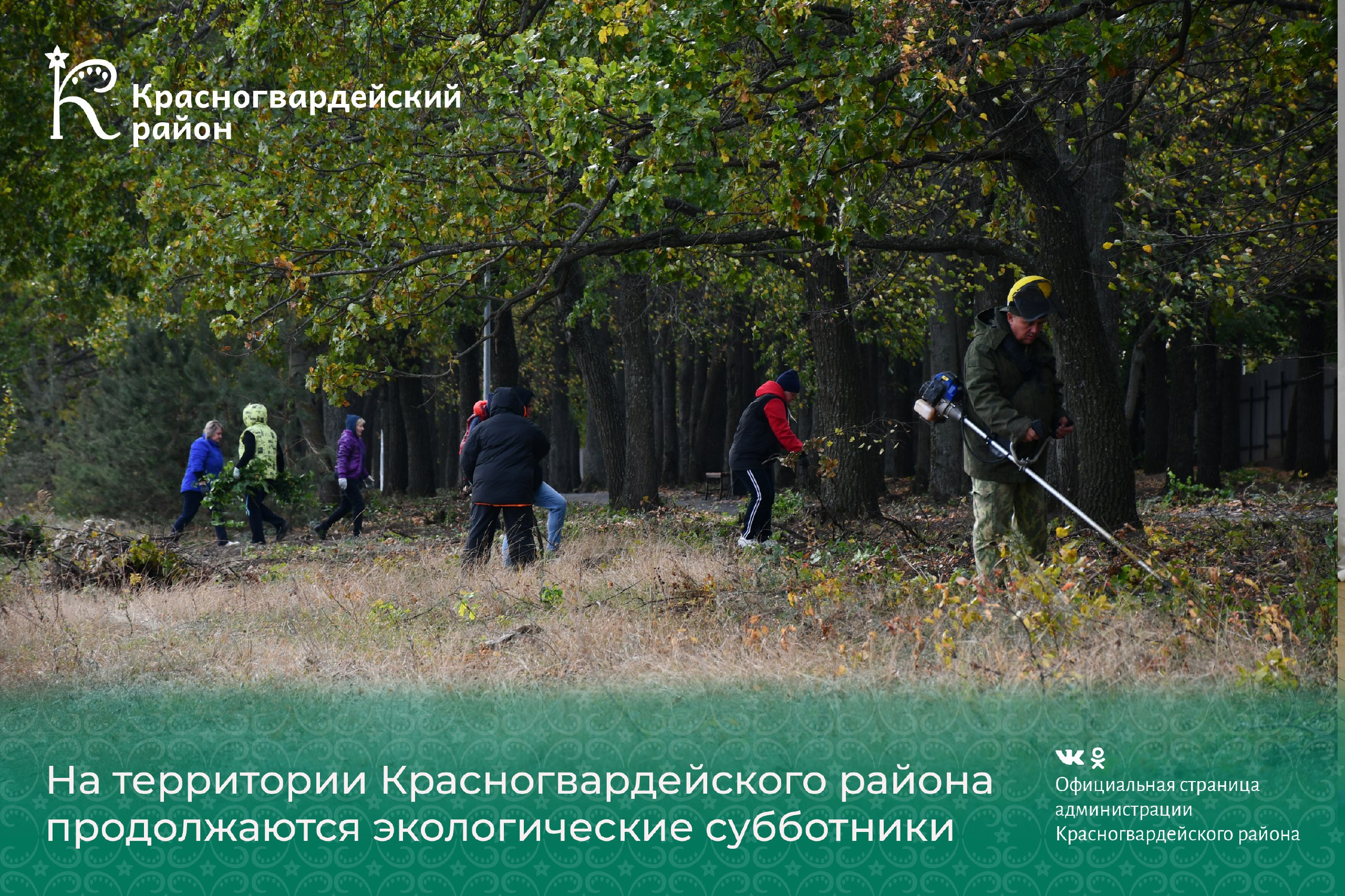 Около трёх тысяч представители районной, городской и сельских администраций, а также сотрудников организаций и учреждений присоединились к наведению порядка на общественных пространствах. На территории Красногвардейского района планируется убрать около 217 объектов.