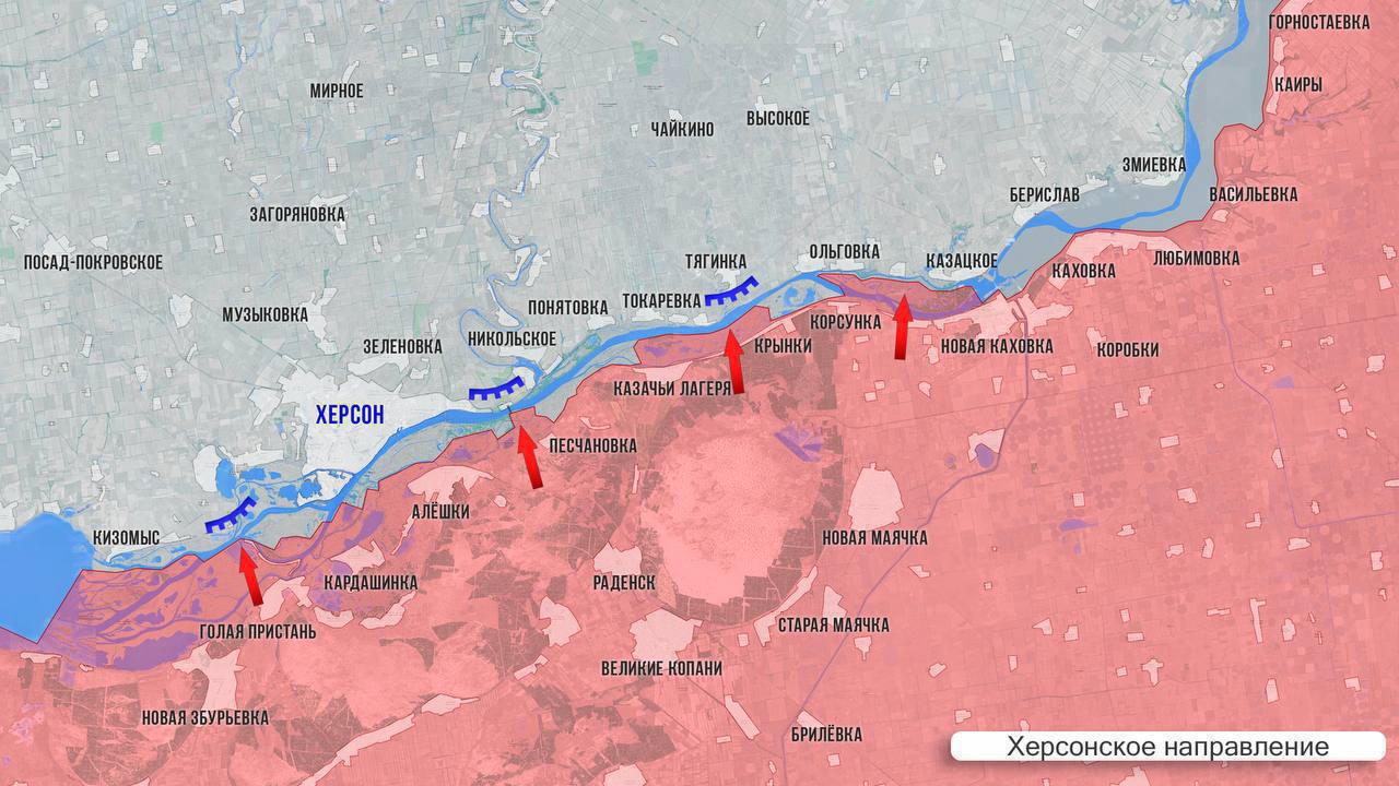 На Херсонском фронте стабильно — армия России бьёт по ПВД ВСУ на правом берегу Днепра. Поражены цели в Ольговке и Антоновке.