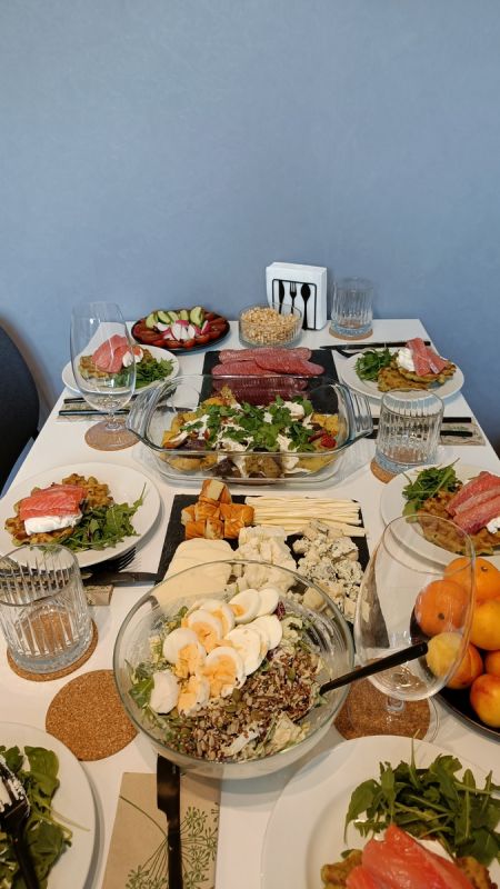 Для празднования Международного женского дня был приготовлен более легкий ужин: запечённая рыба с отварным гарниром, салаты и десерты с использованием натуральных ингредиентов. Уникальное сочетание вкусов и стилей превратило каждую встречу в незабываемый момент.