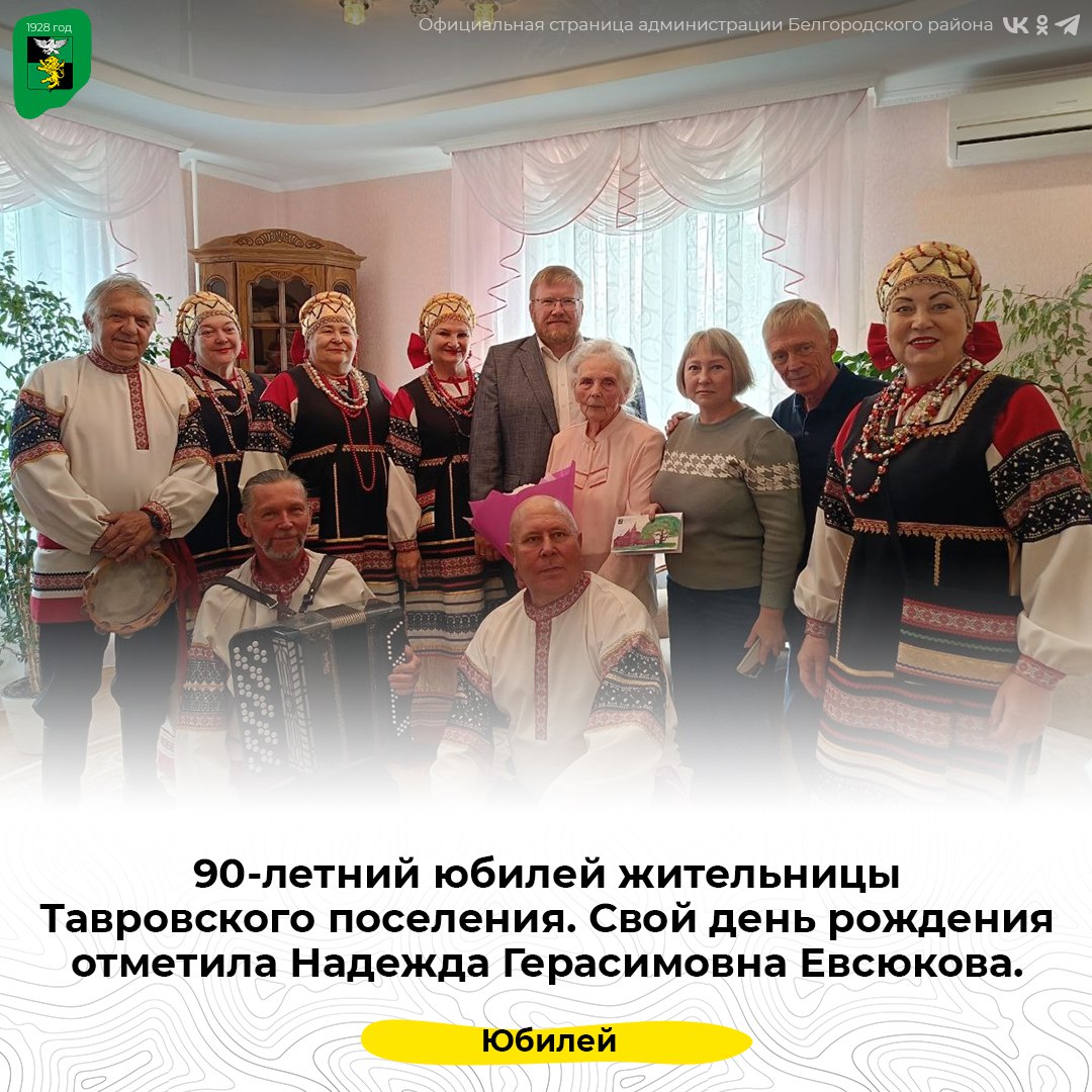 В честь такого значимого события глава администрации Тавровского поселения Артём Кириченко лично выразил тёплые слова с поздравлениями в адрес юбилярши, вручил поздравительную открытку и небольшой памятный подарок. Кроме этого, для виновницы торжества выступил музыкальный коллектив «Любава». Их поздравление тронуло до глубины души всех присутствующих.