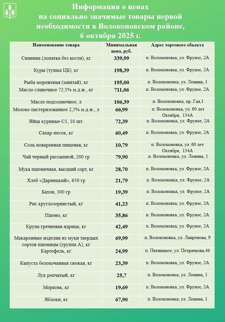 Информацию о магазинах, в которых зафиксированы цены, можно уточнить в отделе муниципальных закупок и развития предпринимательства администрации Волоконовского района по номеру 5-01-44.