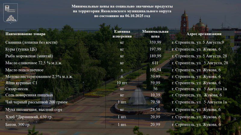 Представляю вашему вниманию актуальную информацию о местах продажи наиболее доступных продуктов питания, входящих в потребительскую корзину, на территории Яковлевского муниципального округа по состоянию на 06 октября 2025 года.