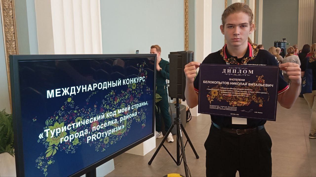 Ученик 8 «Б» класса МОУ «Разуменская СОШ № 3» Белокопытов Николай стал лауреатом III степени престижного IV Международного конкурса «Туристический код моей страны, города, посёлка, района - PRO-туризм». В номинации «О России с любовью» он с честью представил Белгородский район, покорив жюри этого международного состязания.
