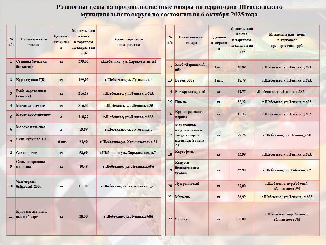 Уважаемые жители Шебекинского округа, в рамках еженедельного мониторинга цен, продолжаю информировать вас о торговых точках, где можно приобрести продукты из потребительской корзины по наиболее доступным ценам.