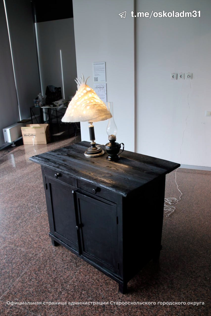 Узнать, что за тайна скрывается внутри её новой работы, можно на открытии выставки. В столе, над которым сейчас трудится художница, спрятан сюрприз для зрителей!