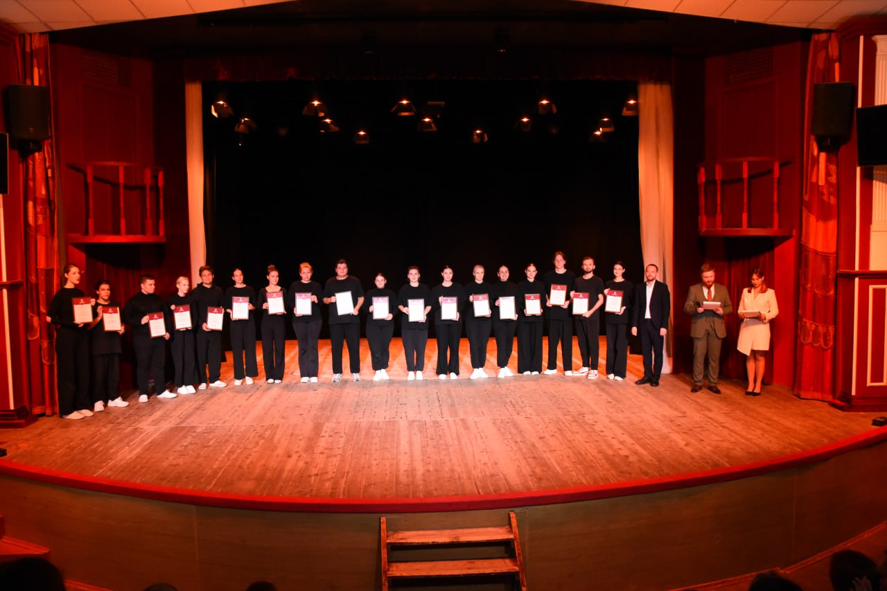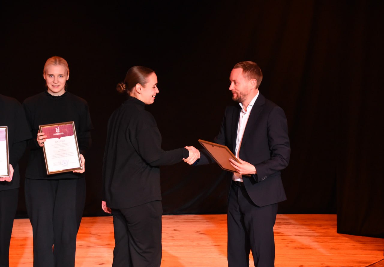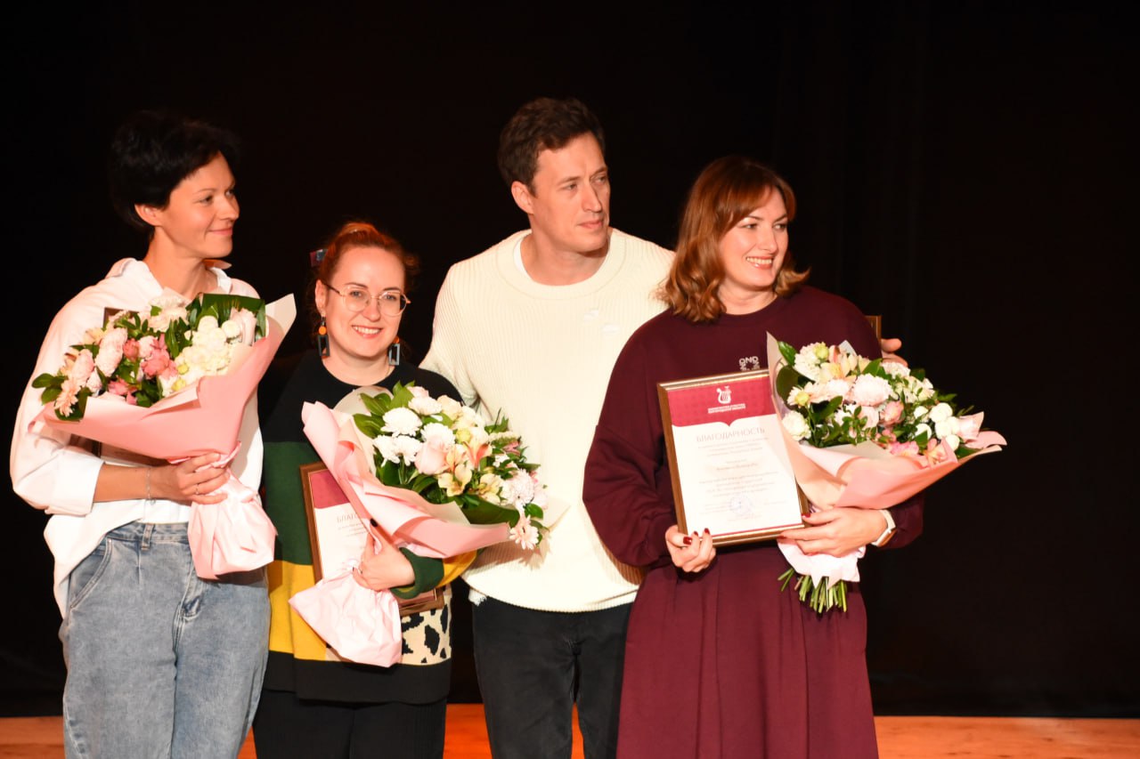 Поблагодарил преподавателей, студентов, вручил дипломы и благодарности министерства культуры Белгородской области педагогам и наставникам театральной смены — Лидии Лукиной, Петру Новикову, Татьяне Рашиной и Анастасии Чаплыгиной, а также студентам факультета режиссуры, актёрского искусства и хореографии Белгородского государственного института искусств и культуры.