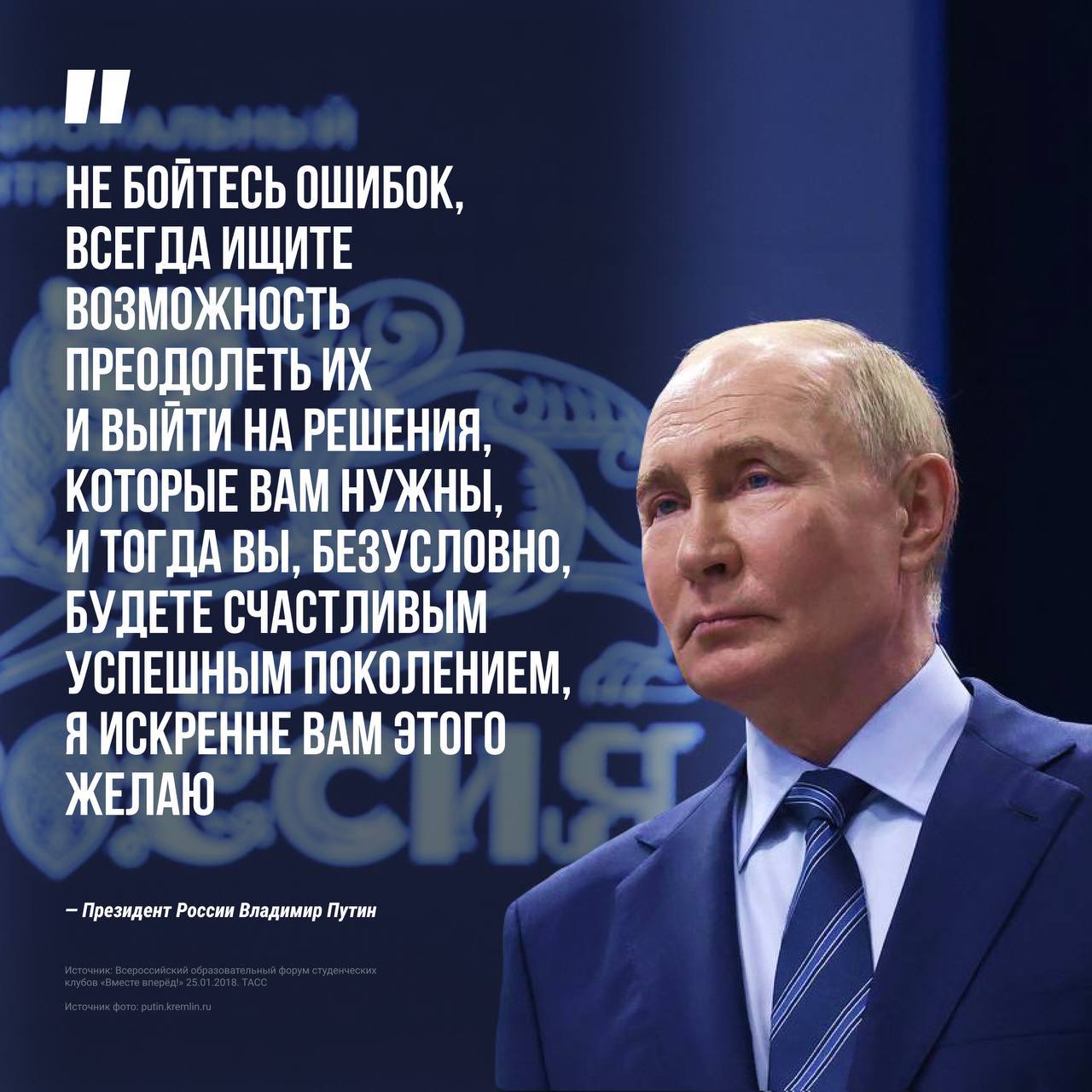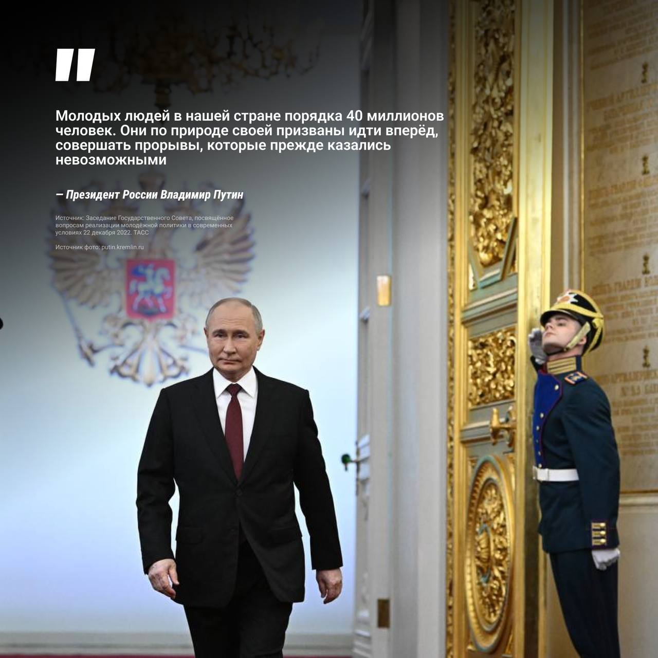 «Благодаря молодёжи Россия всегда остается молодой, юной, дерзкой, устремлённой в будущее», — В.В. Путин