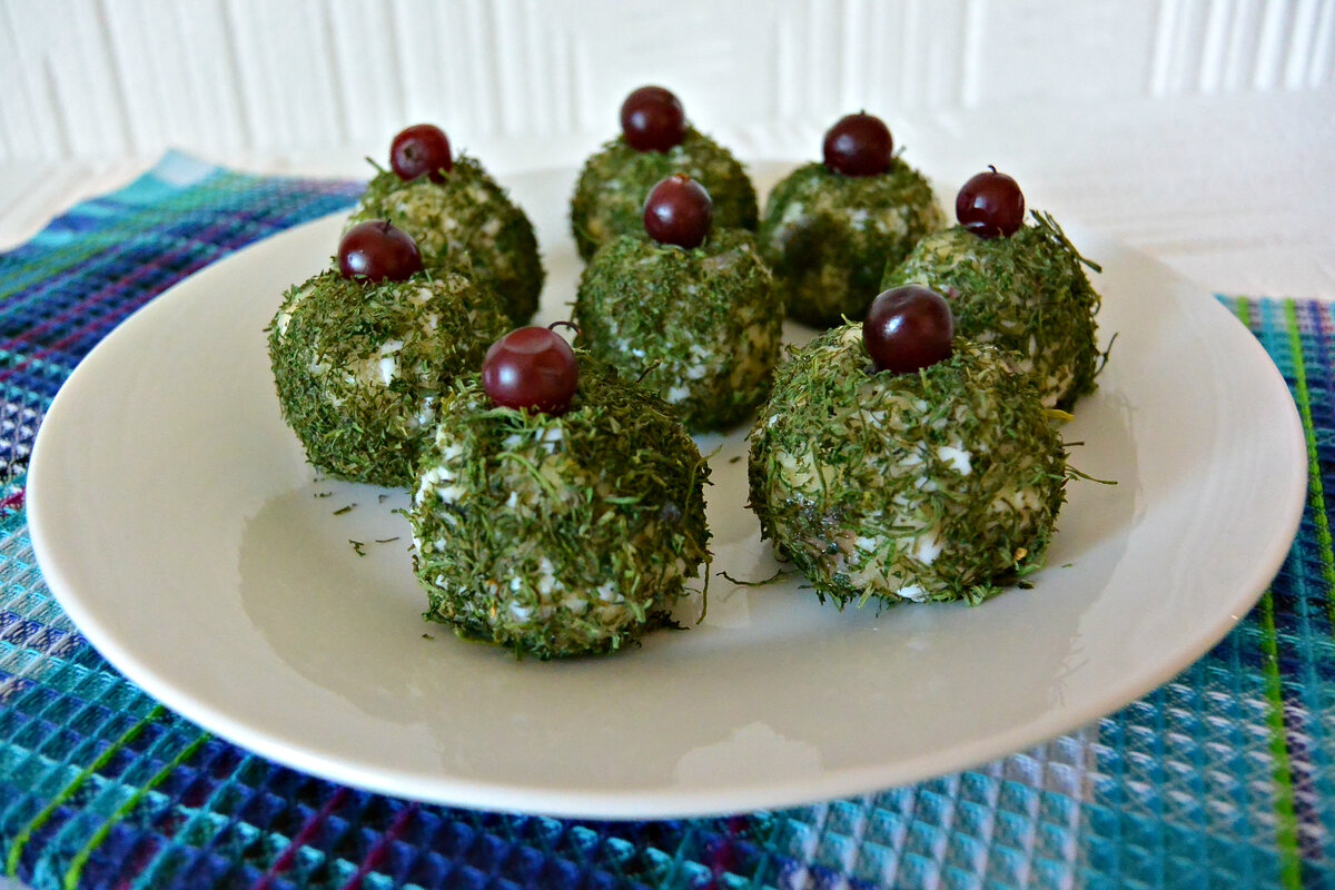 На следующем этапе стоит сформировать небольшие шарики из полученной массы и аккуратно обвалять их в свежем укропе. Это придаст закуске особую изюминку и аромат. Завершающим штрихом станет украшение готового блюда ягодкой — это не только добавит яркости, но и подчеркнёт праздничное настроение.