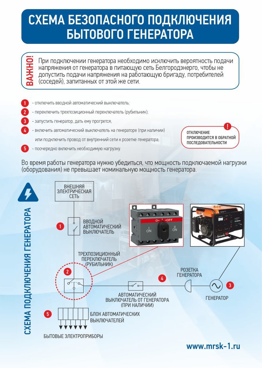 «Белгородэнерго» рекомендует изучить безопасную схему подключения генератора.