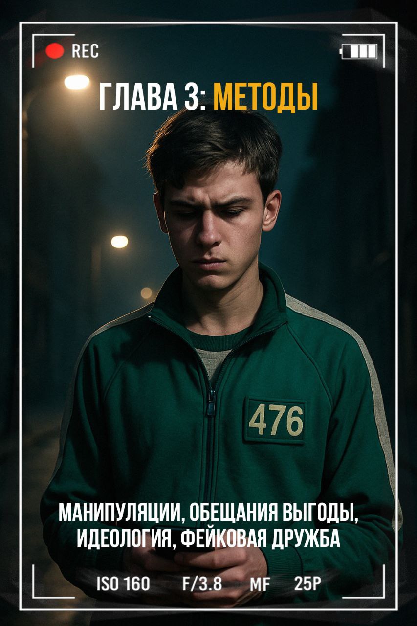 Современные вербовщики используют изощренные методы, часто маскируясь под друзей или наставников. Как распознать и защитить ребёнка — в наших карточках.