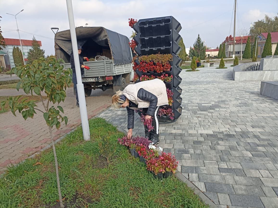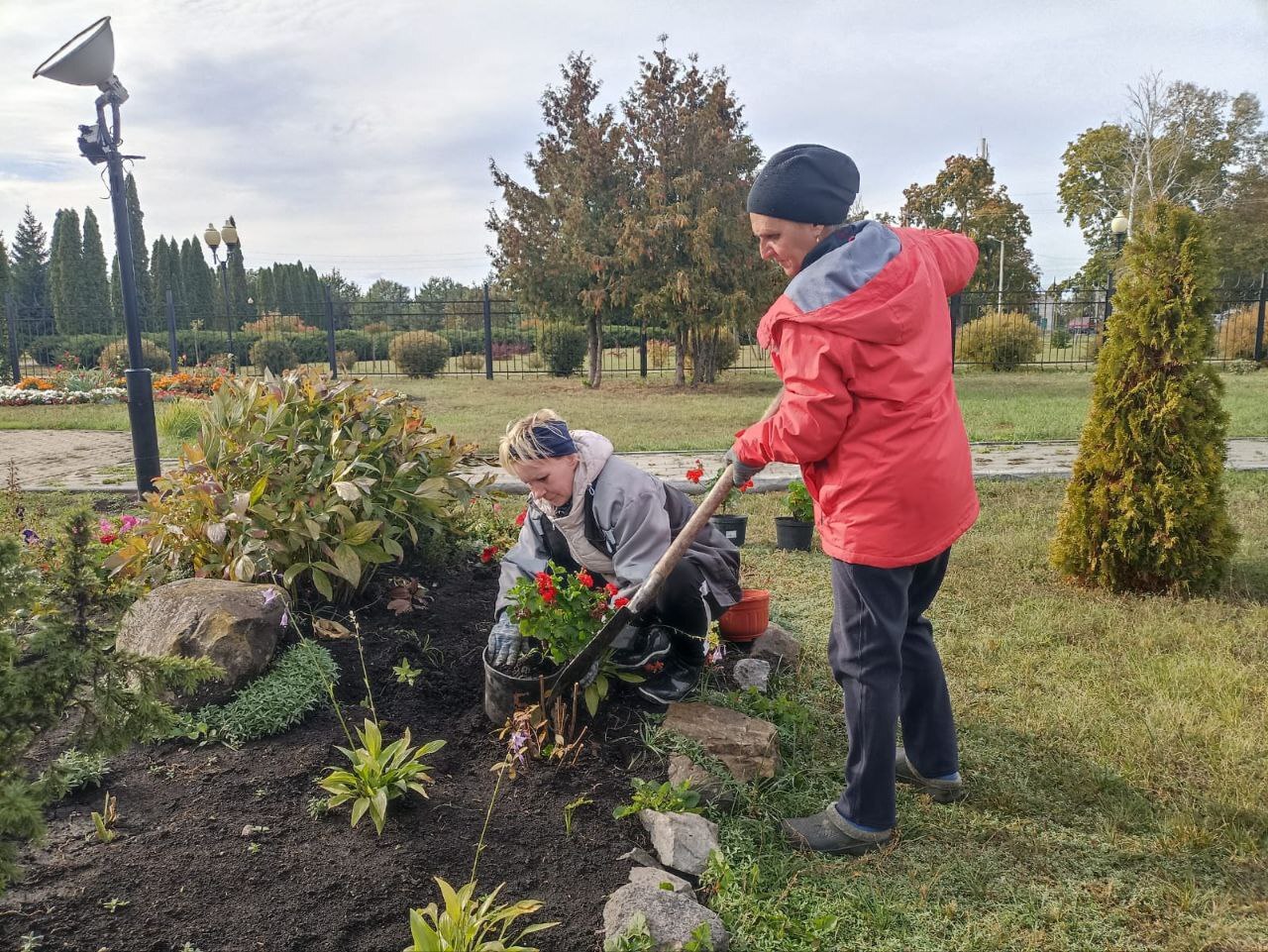 Специалисты Краснояружского зеленстроя занимаются осенним озеленением, уборкой улиц и общественных пространств и бережной подготовкой растений к зимнему периоду.