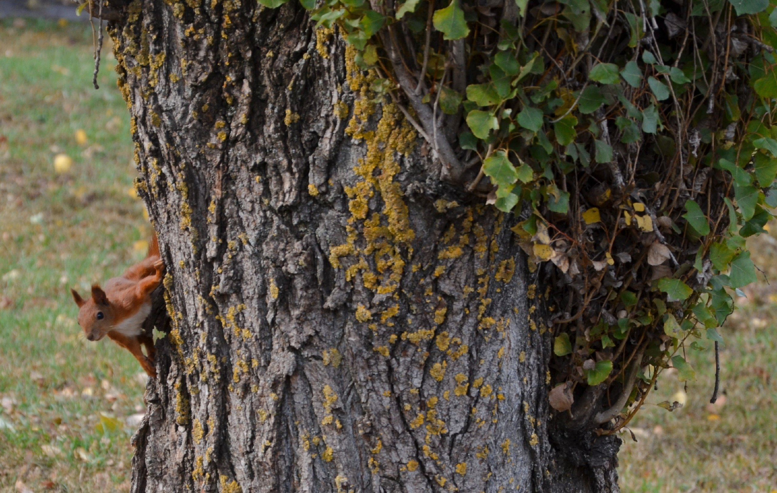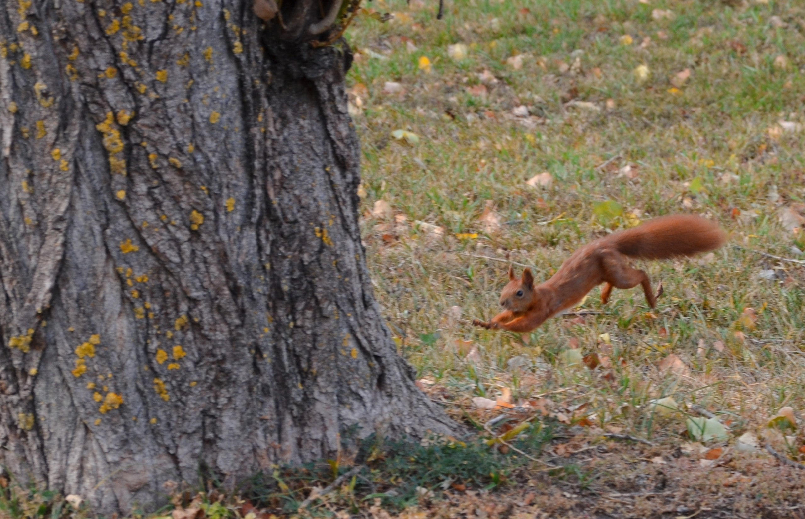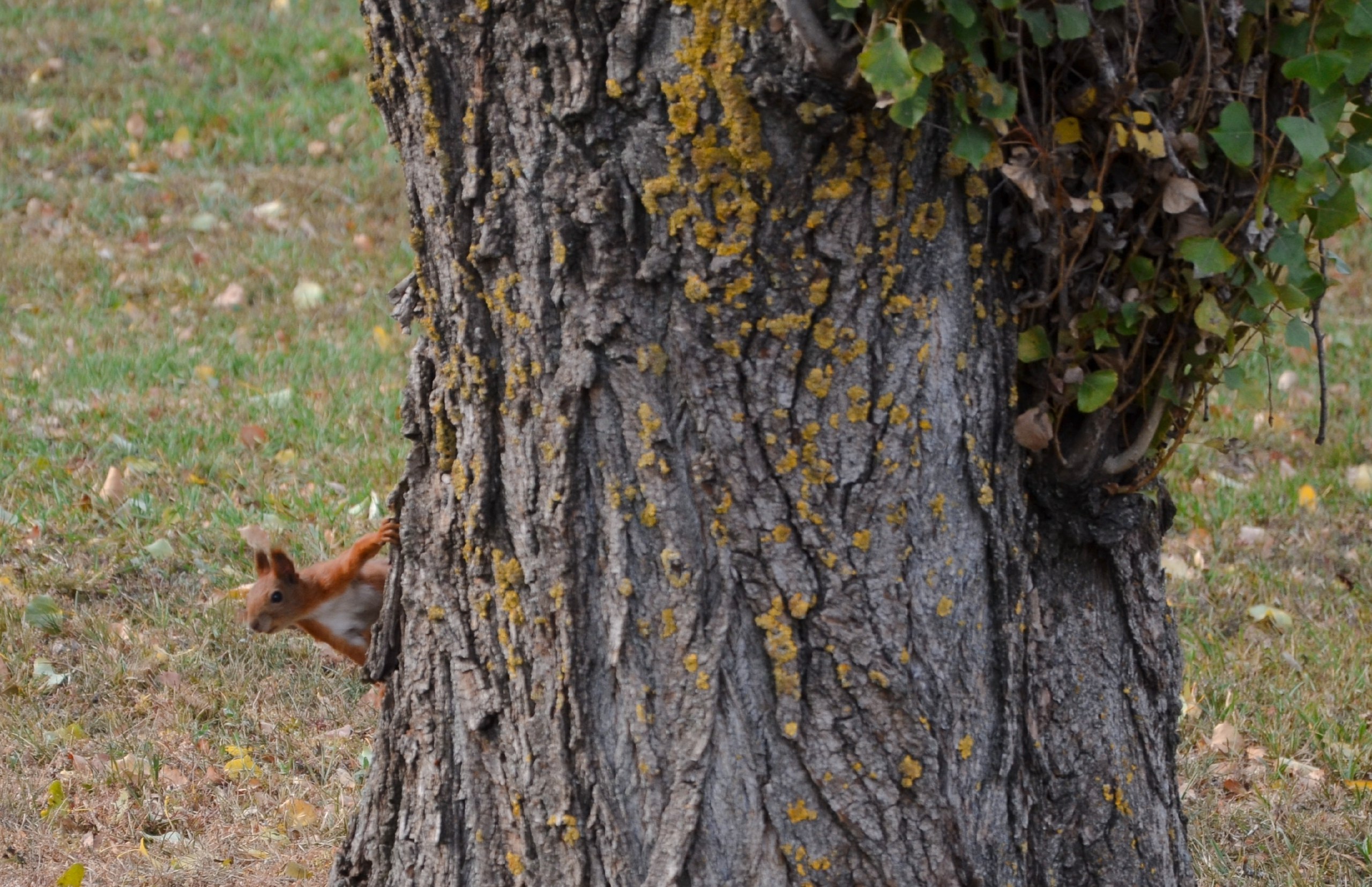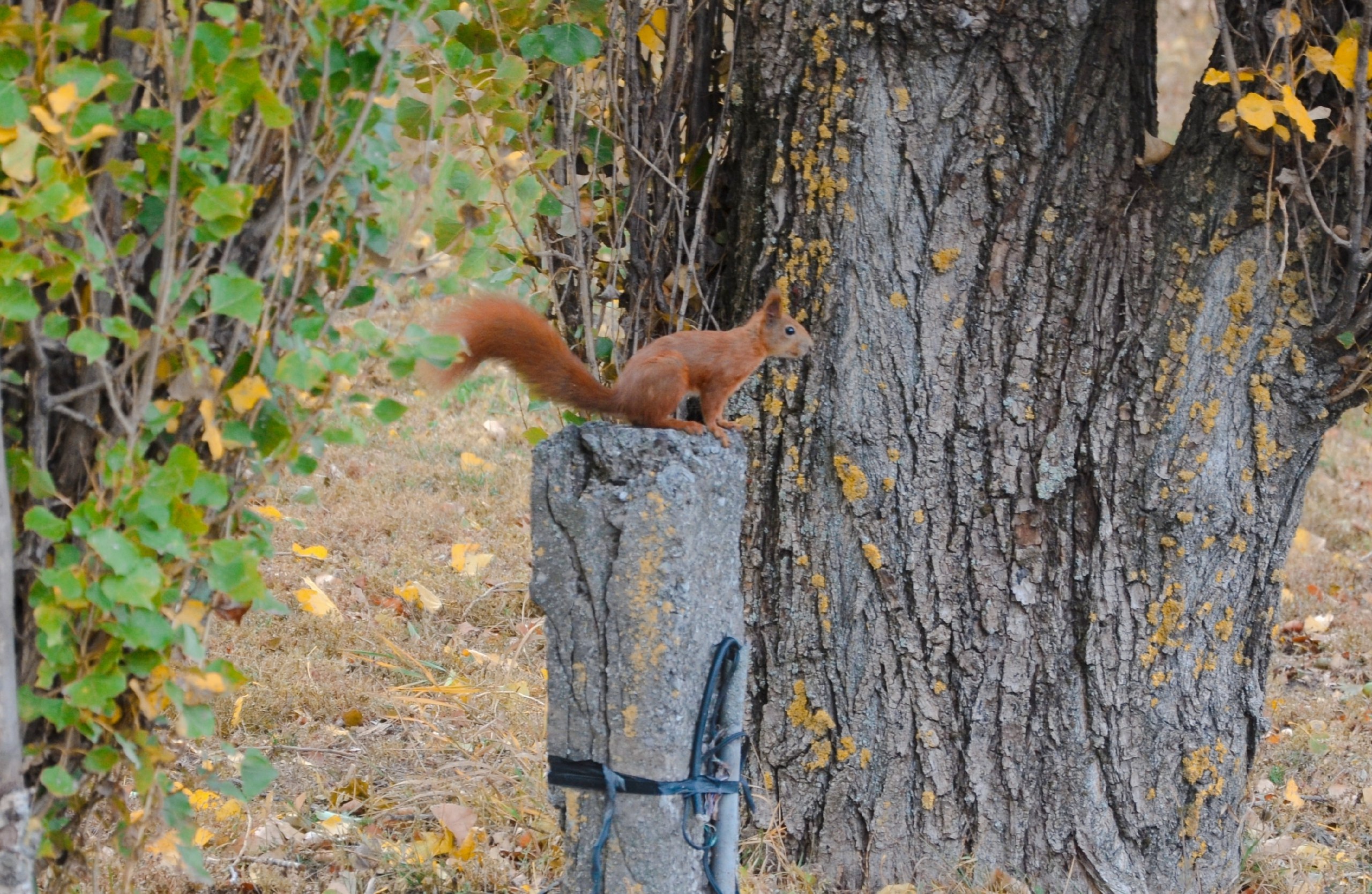 Среди деревьев в нашем любимом Парке Победы живёт такая очаровательная маленькая белочка, настоящая шустрая обитательница осенних аллей