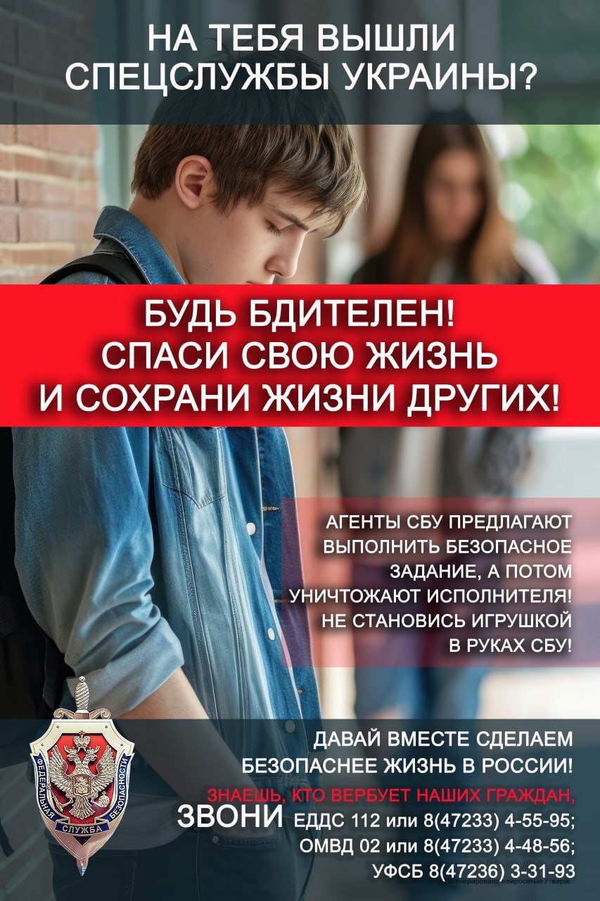 Если вы столкнулись с подобной ситуацией, обратитесь в Единую дежурно-диспетчерскую службу по номерам 112 или 8 (47233) 4-55-95, ОМВД России по Белгородской области 02 или 8(47233) 4-48-56, УФСБ России по Белгородской области 8 (47236) 3-31-93.