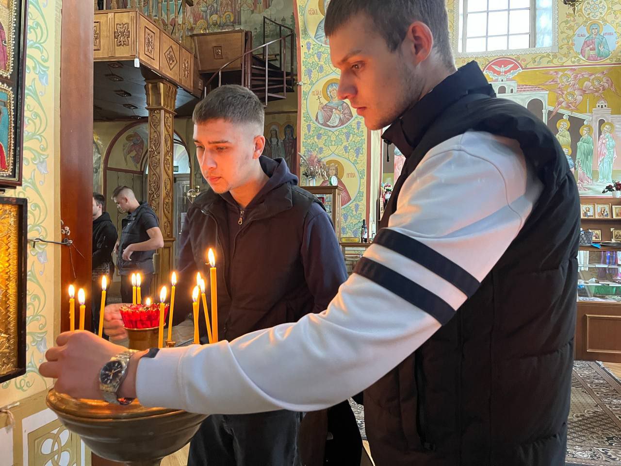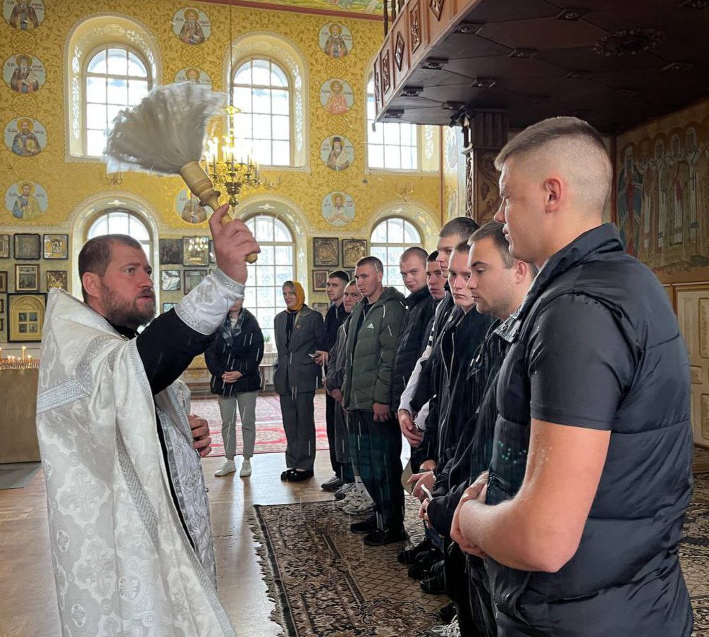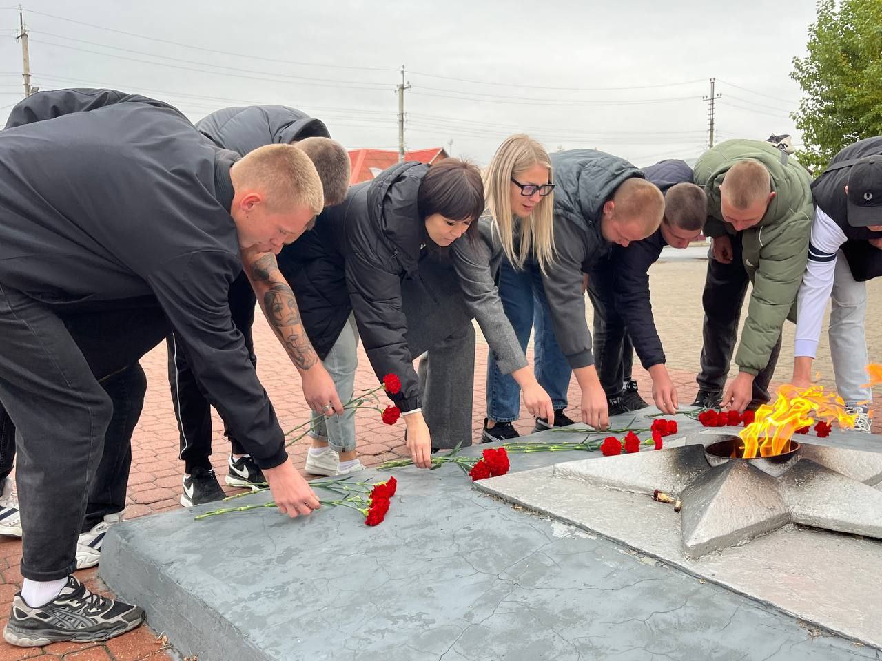 По сложившейся традиции, будущие защитники Отечества возложили цветы к памятнику погибшим воинам на мемориальном комплексе «Вечный огонь» и посетили Успенский Собор.