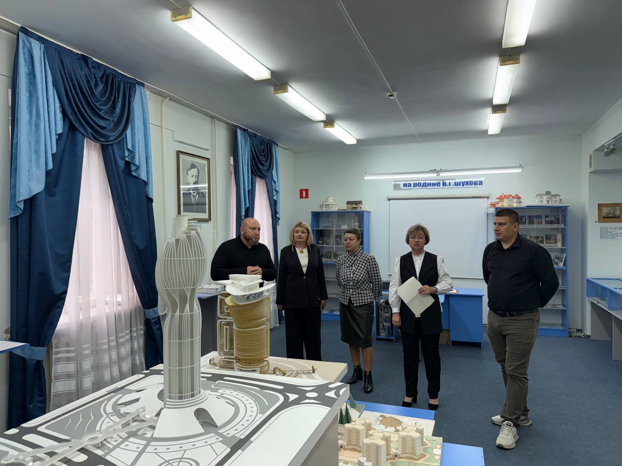 Ольга Устинова, директор школы, провела главу по музею имени Владимира Григорьевича Шухова. Дмитрий Александрович отметил, что всё очень интересно и он сам обязательно подробнее ознакомится с материалами о нашем выдающемся земляке.