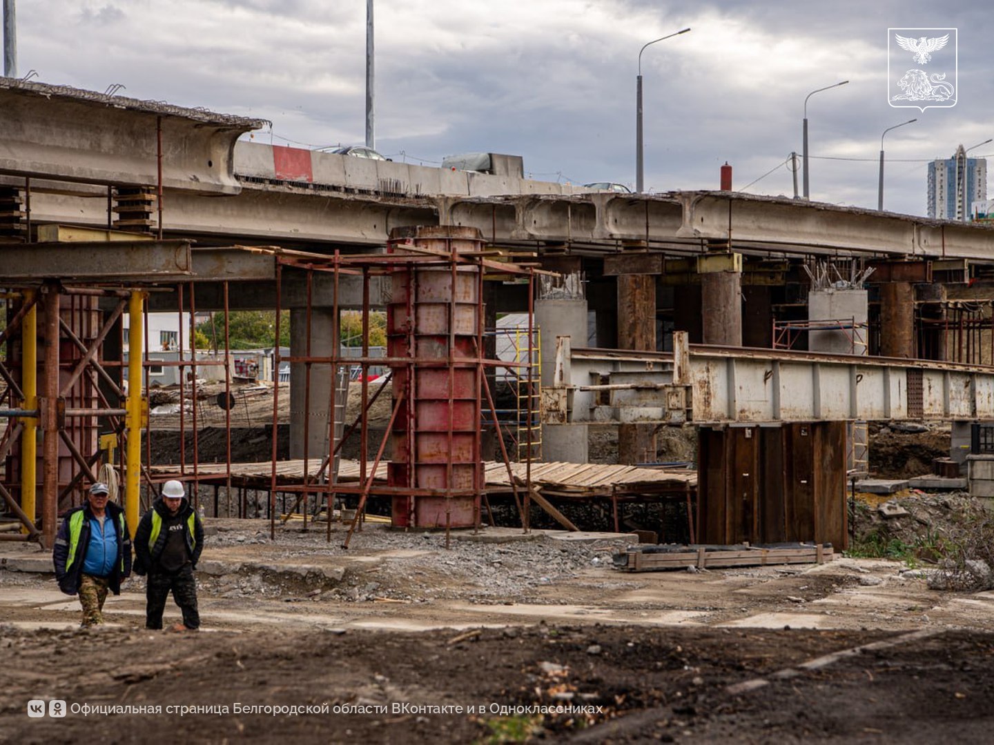 Подрядчик завершил демонтаж старого покрытия, ограждений и освещения, убрал со своих мест для ремонта пролётные балки и приступил к усилению железобетонных конструкций. В настоящее время завершается бетонирование опор моста и начинается устройство ригелей.