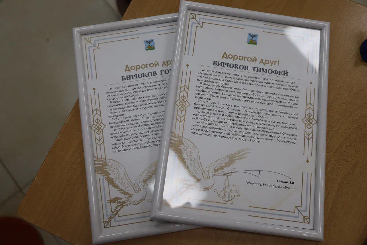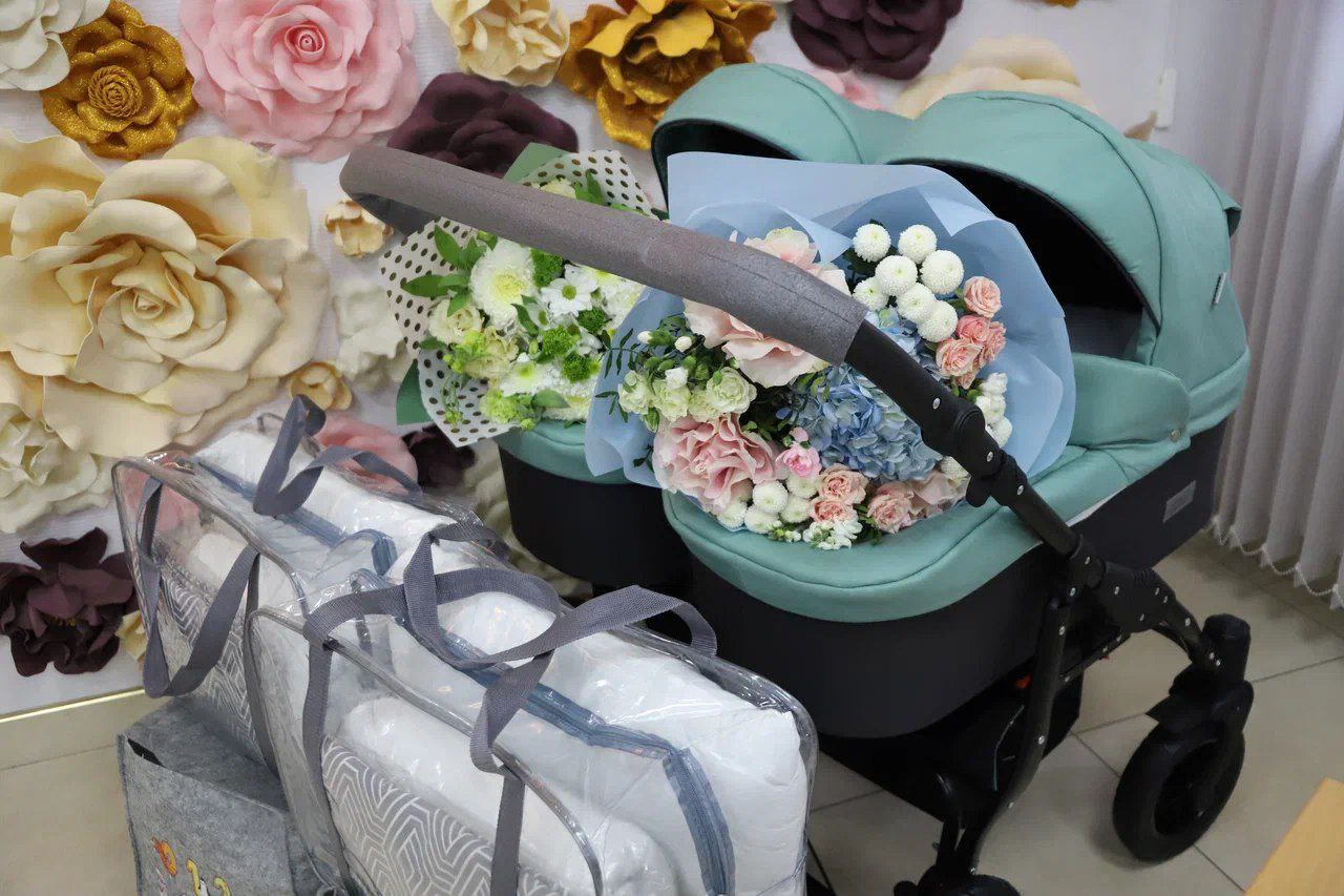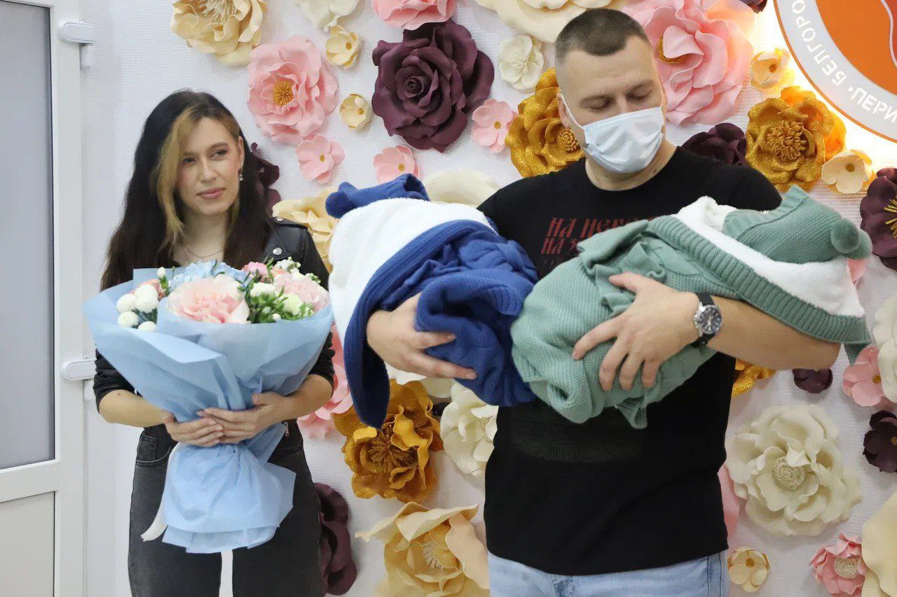 Теперь в семье Анастасии и Евгения трое детей – дома новорождённых братиков с нетерпением ждёт старшая сестрёнка Амелия. И в честь такого прекрасного события мы не могли приехать с пустыми руками. Родителям были вручены подарки: удобная двухместная коляска и набор всего самого необходимого для ухода за новорождёнными. Эта добрая традиция стала возможной благодаря специальной мере поддержки, утверждённой в Белгородском районе в апреле прошлого года.