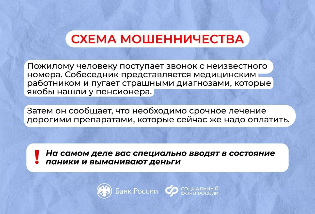 Сотрудники Социального фонда России и Центробанка РФ предупреждают: участились случаи, когда злоумышленники, прикрываясь заботой о вашем самочувствии, пытаются выманить деньги. Особенно часто их жертвами становятся пожилые люди.
