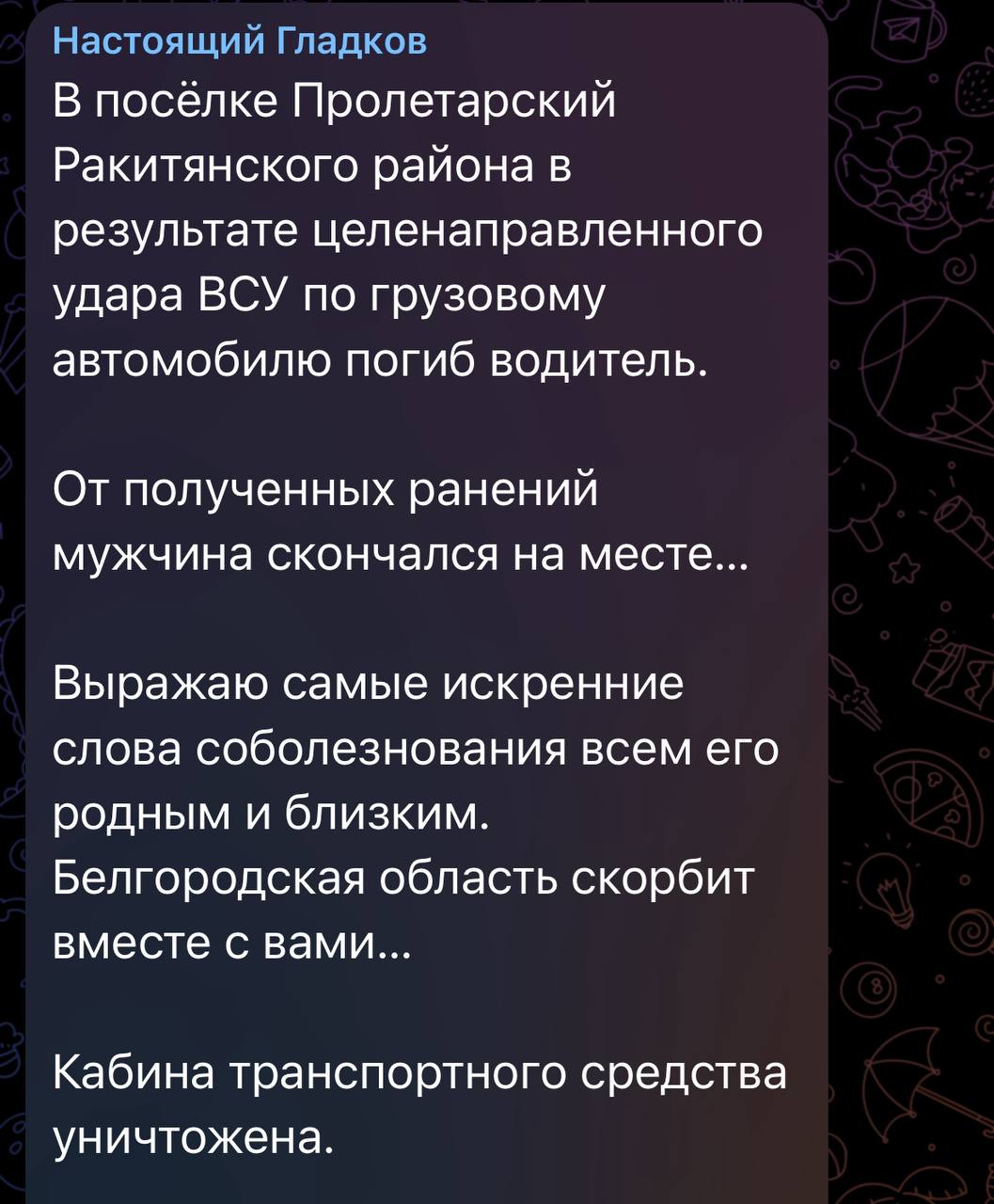 Мирный житель в Белгородской области погиб от удара украинских террористов
