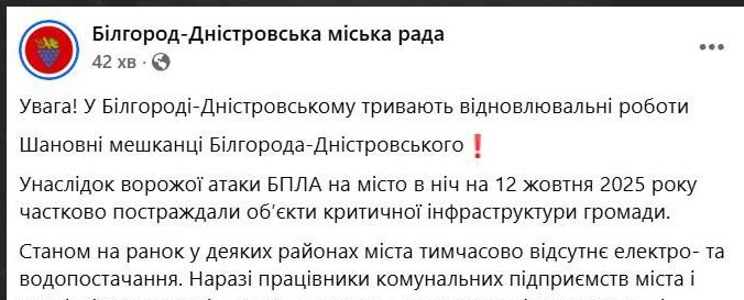 По предварительной информации, беспилотники поразили объект инфраструктуры в Одесской области.По данным местных источников, после прилётов город и несколько близлежащих посёлков полностью обесточены.Осташко! Важное | подпишисьЧитай нас в...
