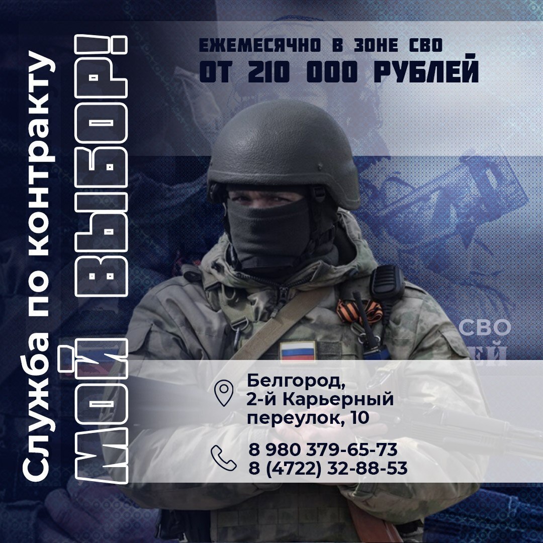 Пункт отбора на военную службу по контракту с Министерством обороны РФ в Белгороде ведёт набор бойцов со всей России.
