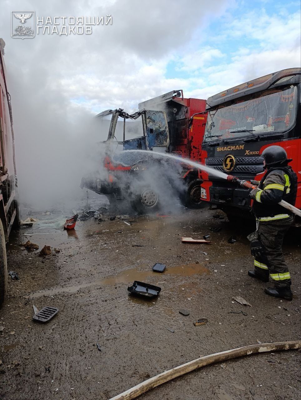 В посёлке Пролетарский в результате детонации беспилотника на стоянке предприятия различные повреждения зафиксированы у трёх легковых автомобилей. В селе Введенская Готня в результате атаки БПЛА загорелась кабина грузового автомобиля — огонь ликвидирован сотрудниками МЧС (фото 1). Кроме того, ещё два транспортных средства получили повреждения (фото 2).