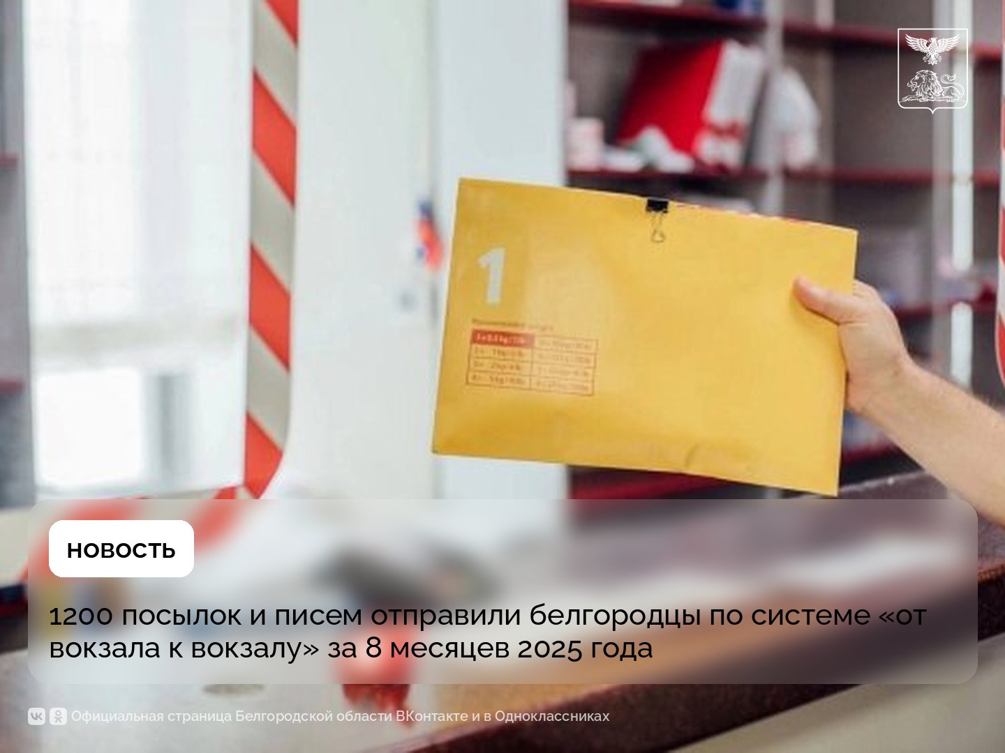 1200 посылок и писем отправили белгородцы по системе «от вокзала к вокзалу» за 8 месяцев 2025 года