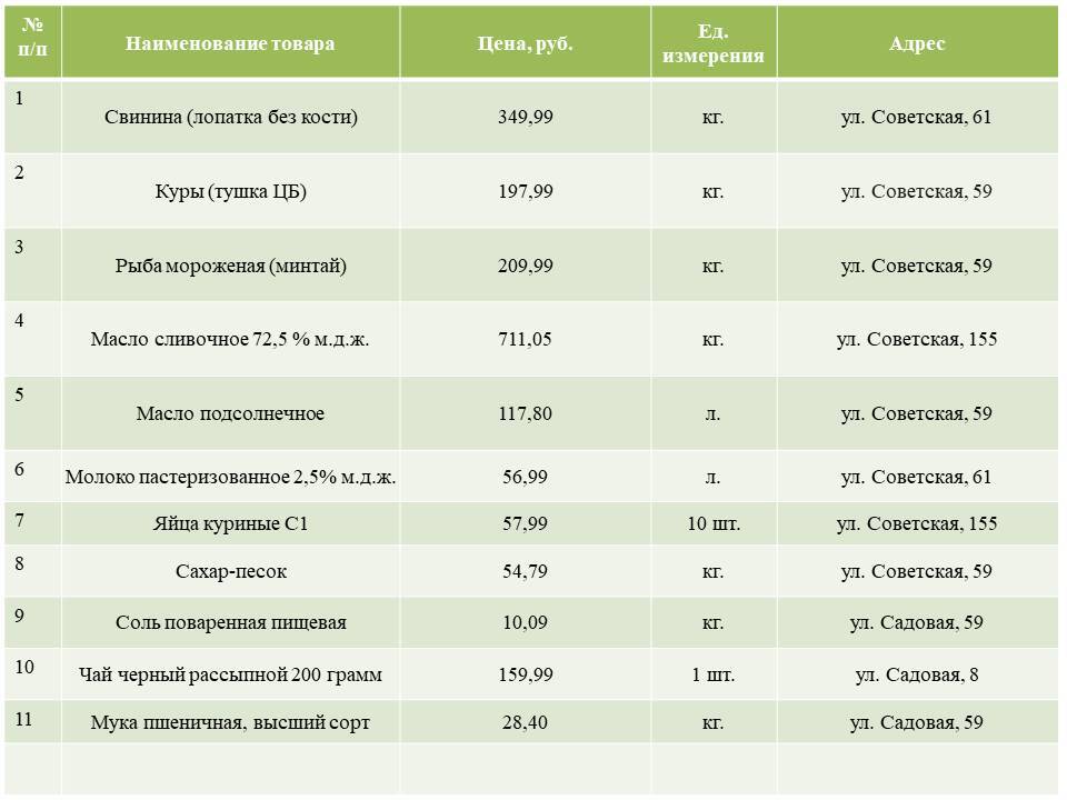Представляем вам актуальную информацию о наиболее выгодных предложениях на самые востребованные товары потребительской корзины на территории Прохоровского района.