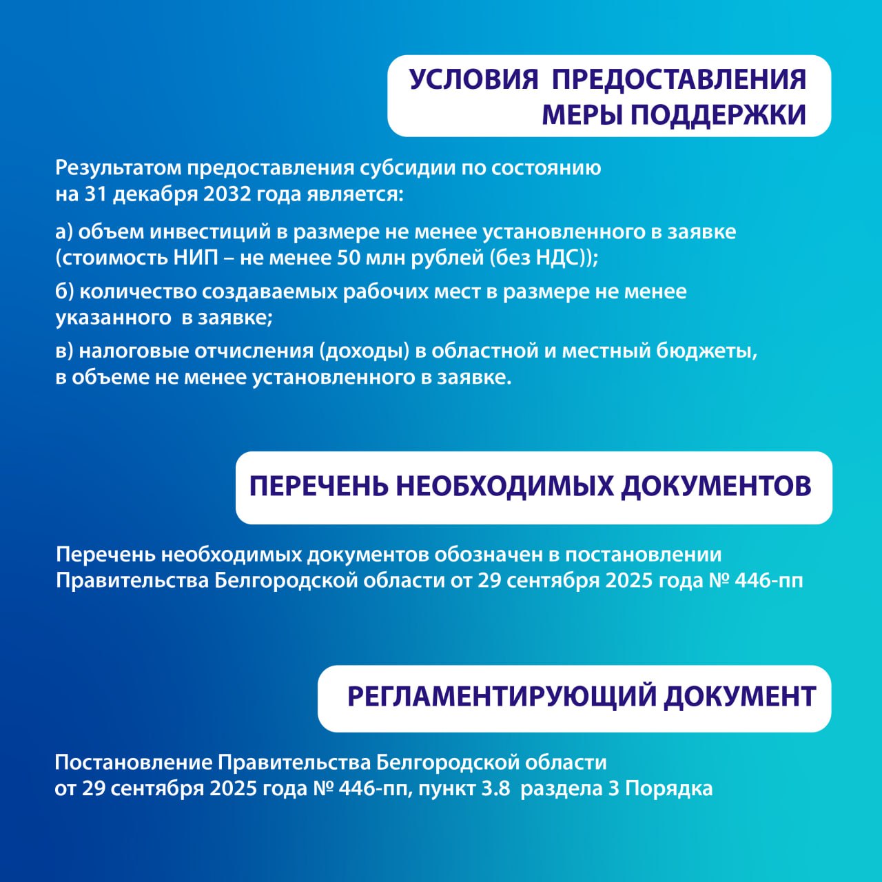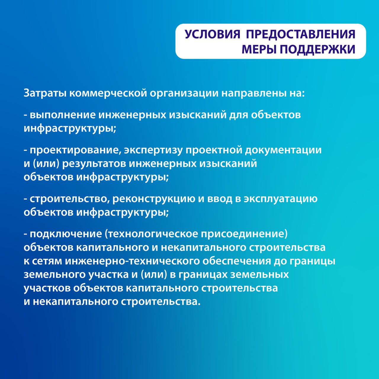 До 17 октября вы можете подать заявку на возмещение затрат, связанных с созданием инфраструктуры: сети газа, электро-, водоснабжения, водоотведения и дороги на этапе запуска проектов. Это позволит сократить сроки их окупаемости.