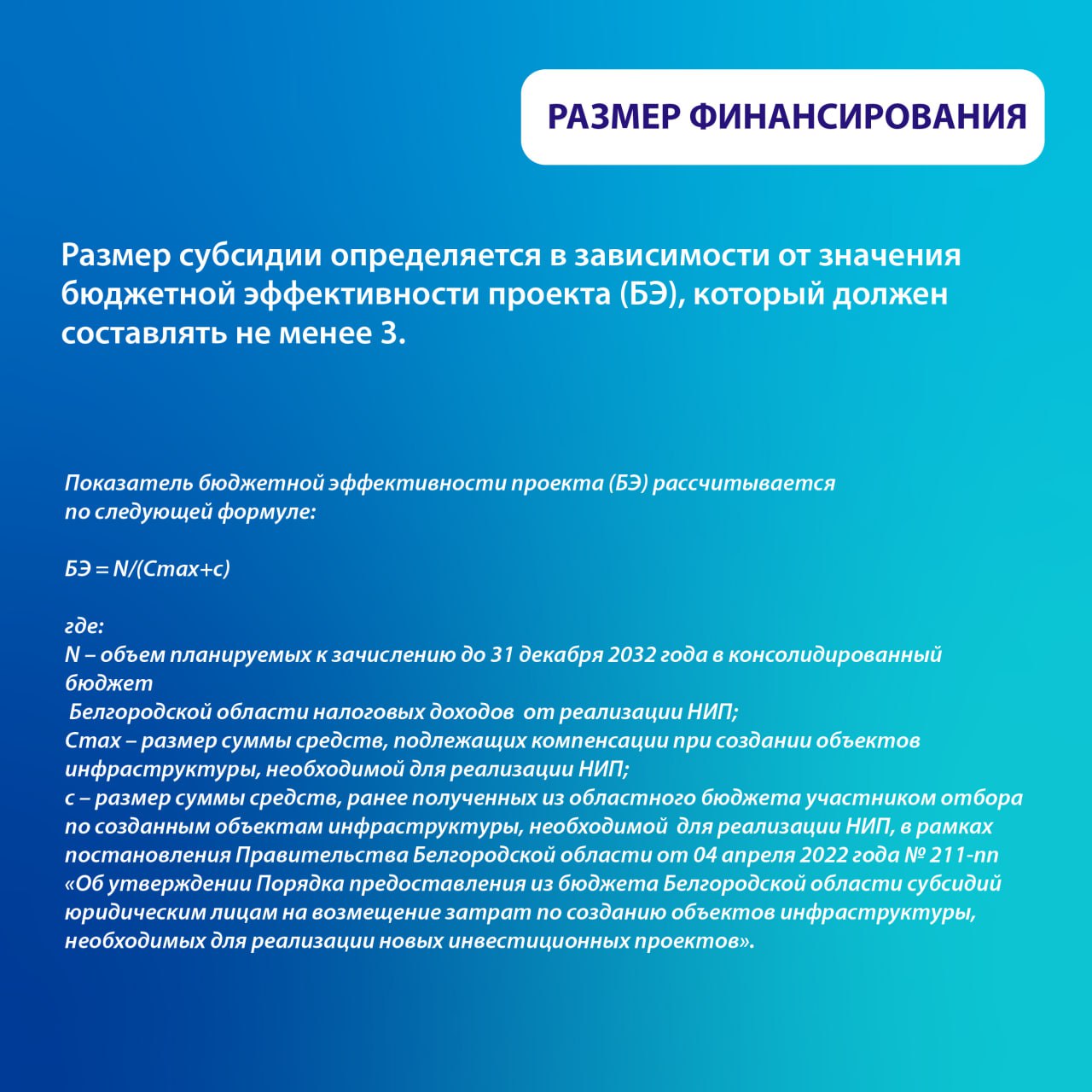Основные критерии оценки при отборе проектов — объём инвестиций и налоговых отчислений в региональный бюджет до 2032 года.