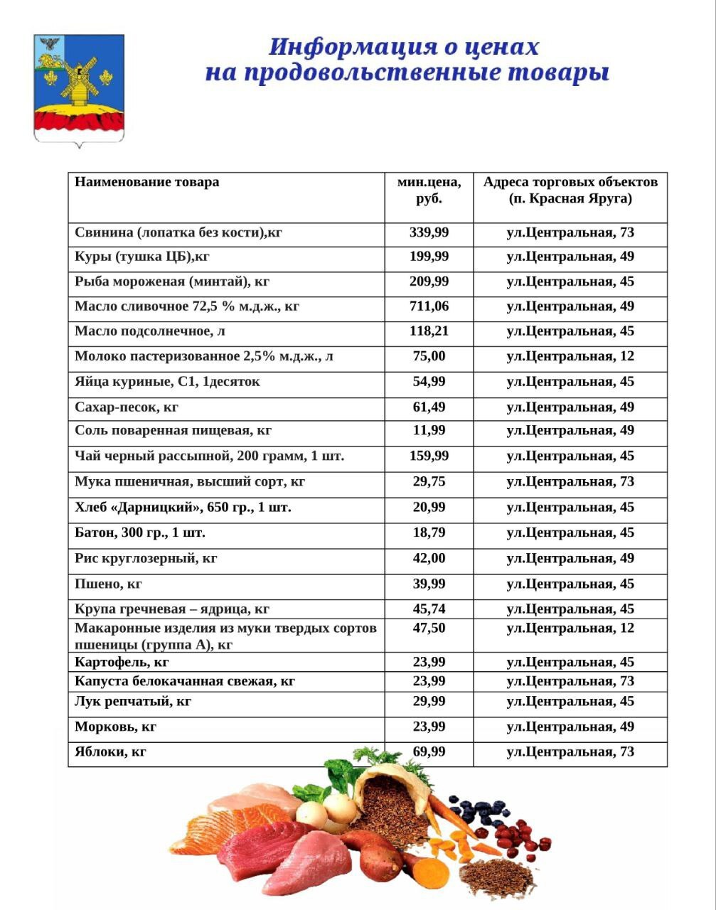 Публикуем актуальную информацию о ценах на основные продукты питания на продовольственном рынке нашего района. В таблице указаны минимальные розничные цены, зафиксированные на хлеб, сахар, молоко, муку, растительное масло, масло сливочное, мясо, куриные яйца, крупы, овощи и фрукты.