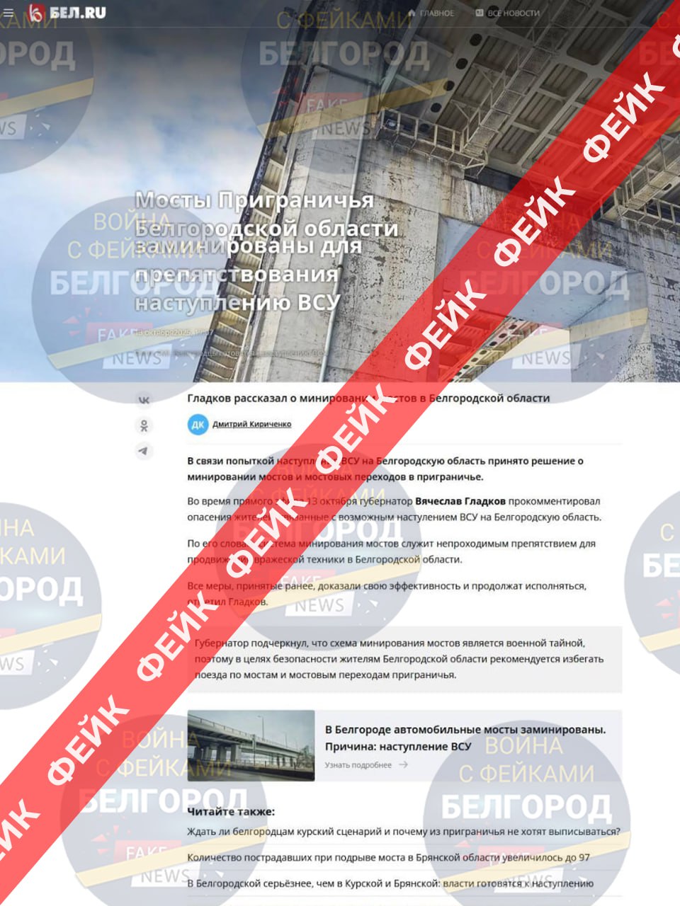 Фейк: мосты приграничья Белгородской области заминированы для препятствия наступлению ВСУ