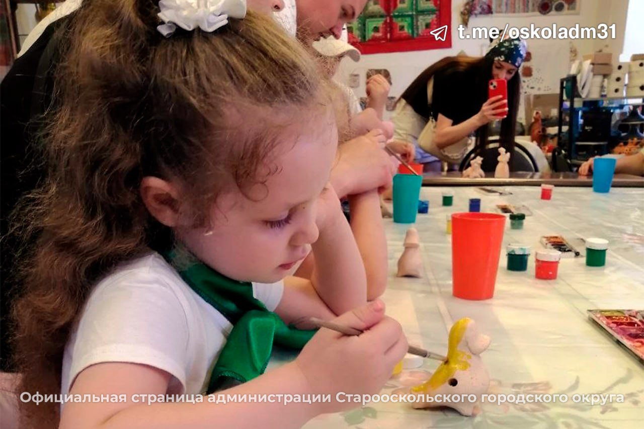 А воспитанники детского сада №15 «Дюймовочка» отправились по маршруту от пляжа «Юность» до Старооскольского Дома ремесел, где не только познакомились с народным творчеством, но и смастерили собственные глиняные свистульки, которые смогли забрать домой.
