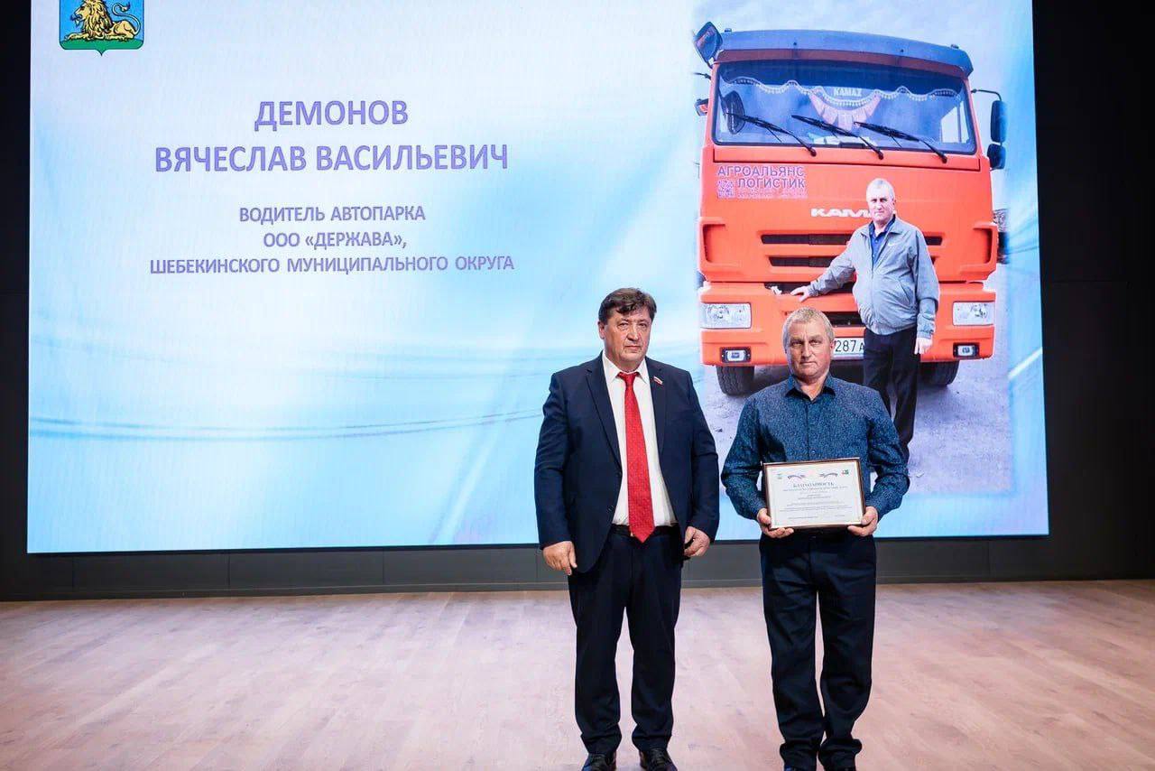 Благодарностью председателя Белгородской областной Думы отмечен водитель автопарка ООО «Держава» Вячеслав Васильевич Демонов. За время работы в предприятии он проявил себя как грамотный и добросовестный специалист, стабильно выполняющий планы по грузоперевозкам.
