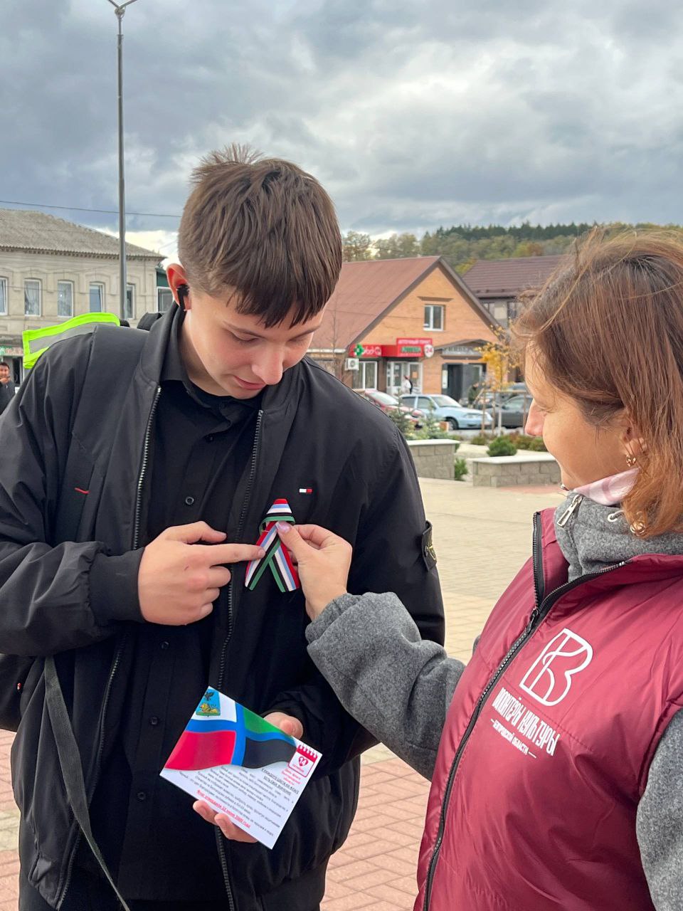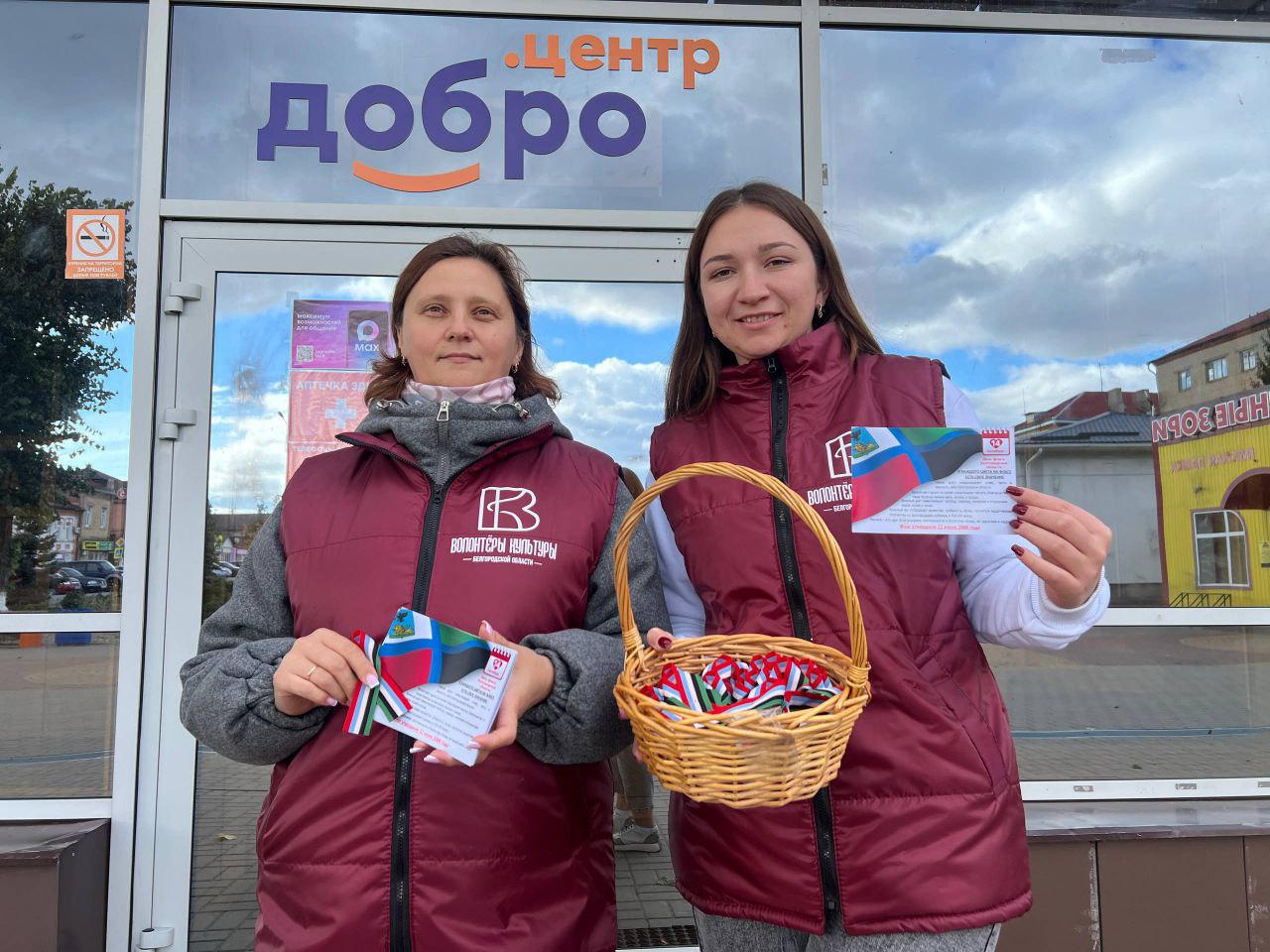 В посёлке Борисовка «Волонтёры культуры» и «Волонтёры Победы» организовали праздничную акцию, посвящённую Дню флага Белгородской области. Они раздали жителям памятки и символические ленточки с изображением регионального стяга.