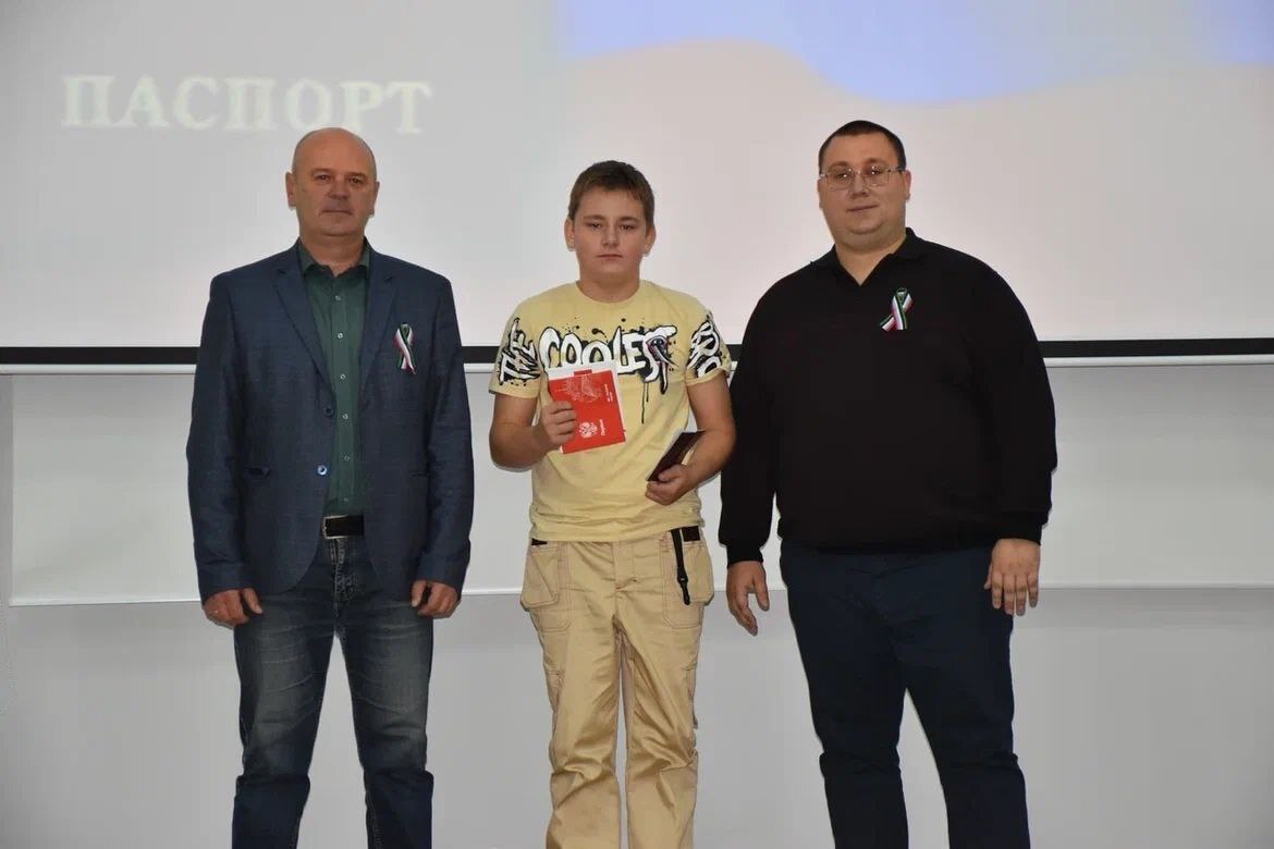 С важным событием ребят поздравили директор Центра молодёжных инициатив Дмитрий Бровченко и заместитель начальника управления культуры администрации Красногвардейского района Игорь Черёмушкин. Они пожелали ребятам быть достойными гражданами Российской Федерации и соблюдать законы нашей страны.