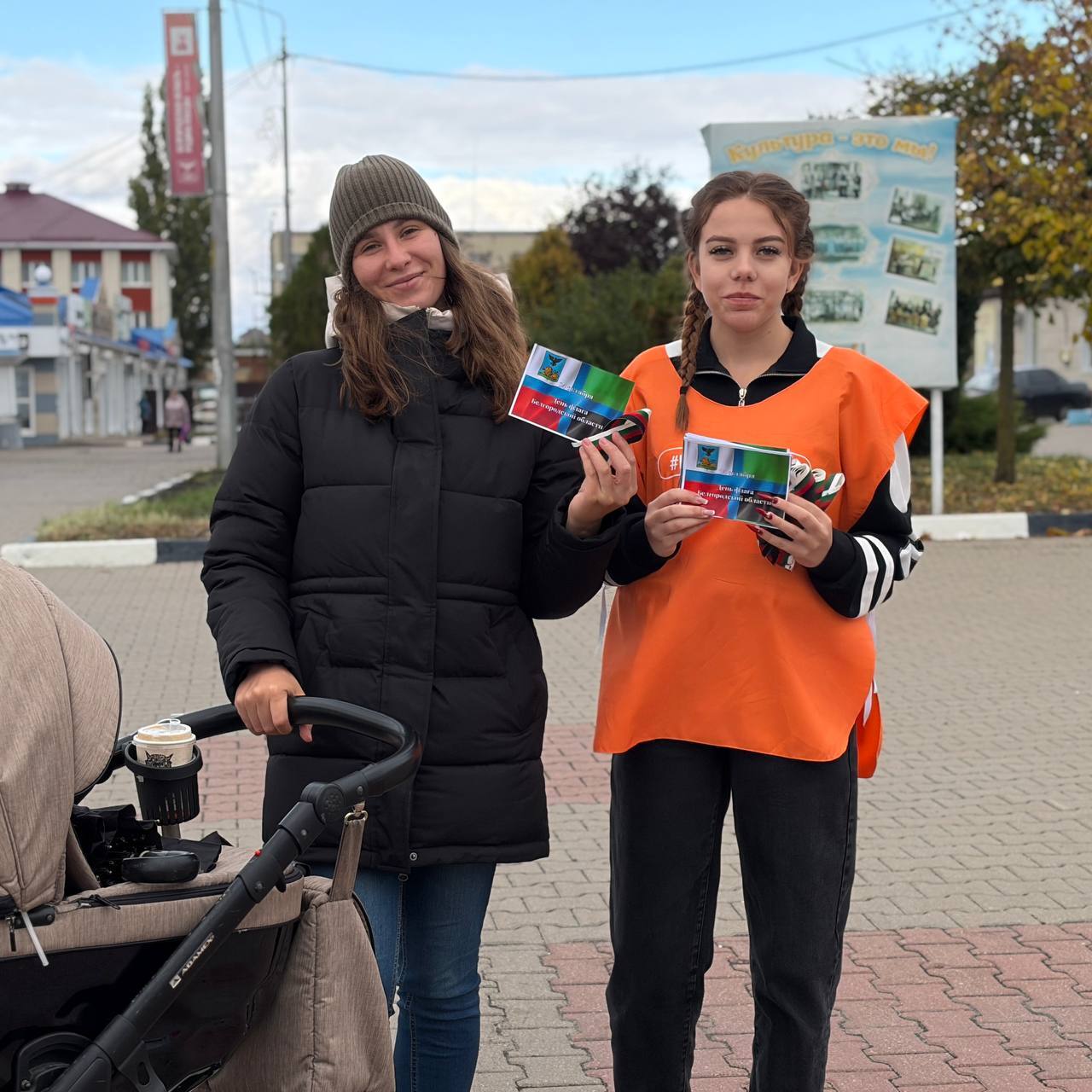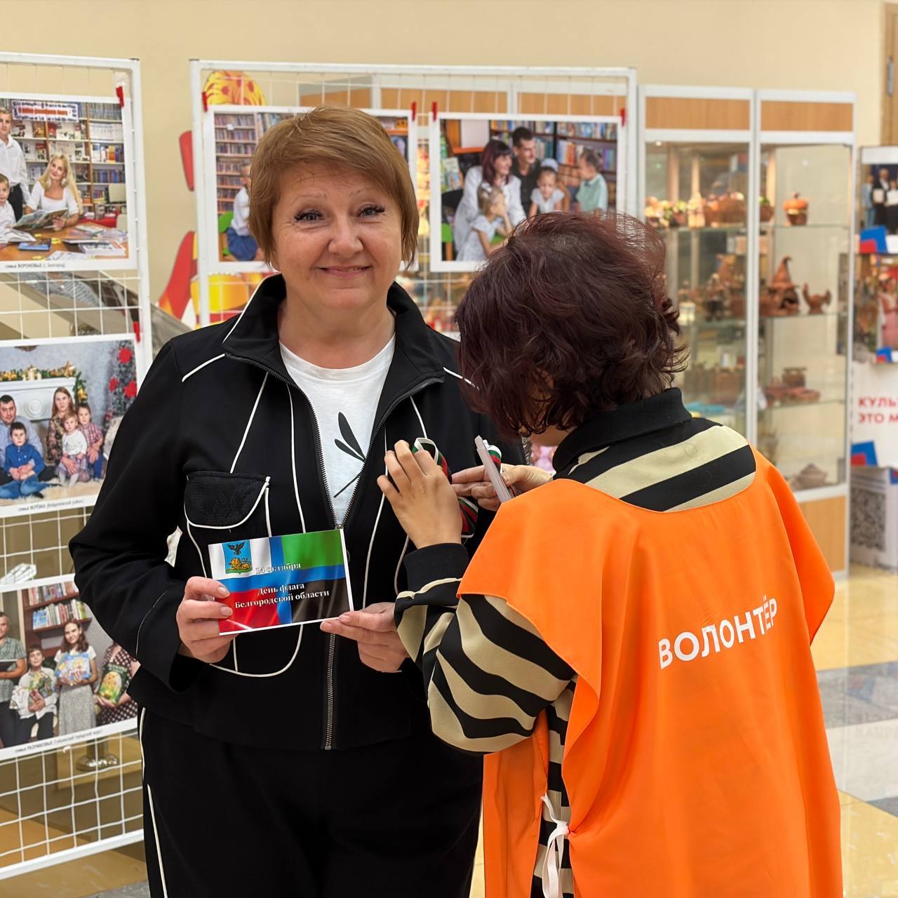 Волонтёры в рамках акции #МыВместе подготовили поздравительные открытки и ленты в цветах флага области. Они раздавали их жителям посёлка Чернянка на улицах и праздничном концерте.
