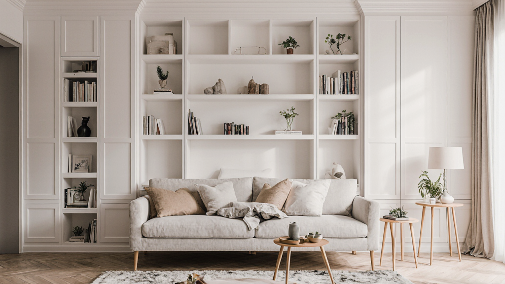 При выборе мебели следует ориентироваться на многофункциональность и легкость. Мебель на тонких ножках визуально «освежает» пространство, а встроенные системы хранения — отличное решение для экономии места. Мебель, которая сочетает в себе несколько функций, например, диван-кровать или стол с ящиками, значительно упрощает организацию пространства. Чем меньше декоративных элементов, тем просторнее будет выглядеть комната. Вместо множества мелких деталей стоит акцентировать внимание на качественных предметах.