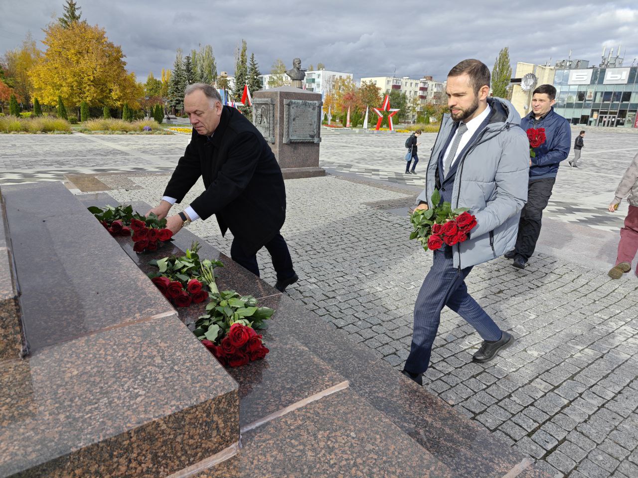 Также делегация посетила Аллею памяти, посвященную героям-старооскольцам, отдавшим жизнь при исполнении воинского долга в ходе специальной военной операции, где состоялось возложение цветов к знаку «Город воинской славы».