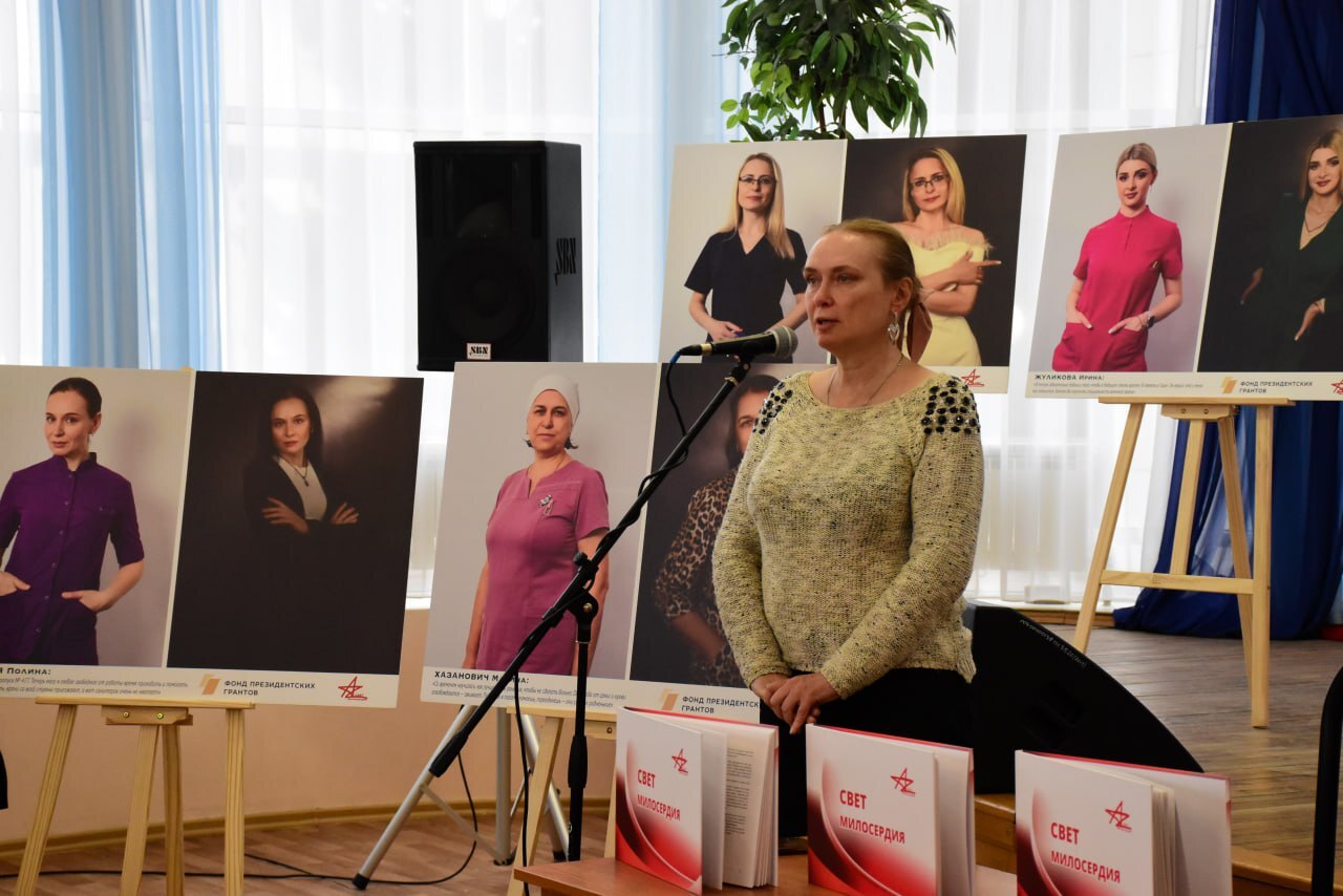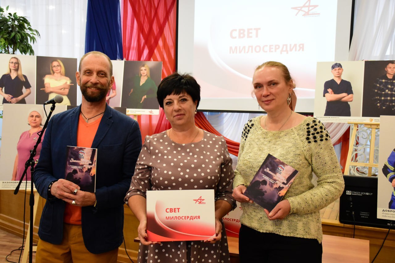 Авторы проекта «Свет милосердия» познакомили зрителей с фотовыставкой, рассказали о создании книги и поделились историями тех, кто совершает ежедневный подвиг милосердия. В числе волонтёров, которым посвящена книга, наша землячка - фельдшер Борисовской подстанции, куратор группы «Помочь Победе» Евгения Добродомова.