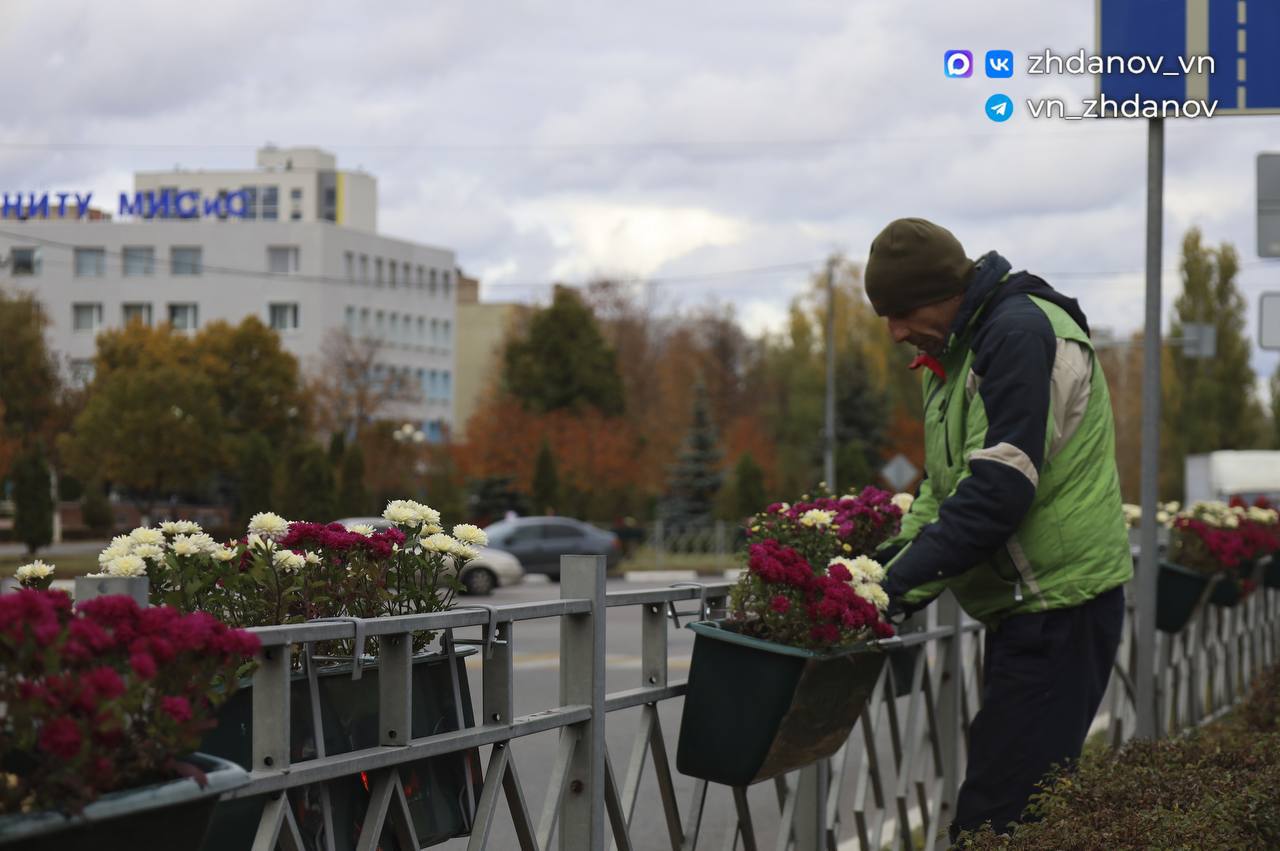 Часть круглых вазонов на опорах останется на своих местах, но цветы и грунт из них будут убраны. Хризантемы на проспекте Молодёжном и улице Ленина ещё немного порадуют нас своим цветением, пока позволяют погодные условия.