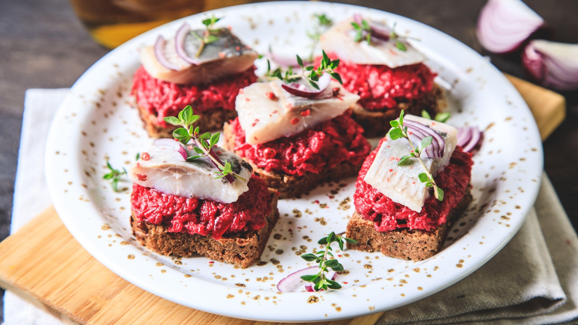 Вместо банальной «шубы» приготовьте к новогоднему столу оригинальную легкую закуску — бутерброды со свеклой и сельдью. Гости тут же сметут их со стола!