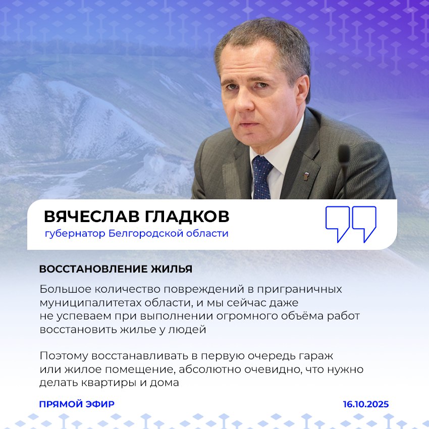 Вячеслав Гладков рассказал о порядке восстановления объектов, повредившихся от обстрелов ВСУ